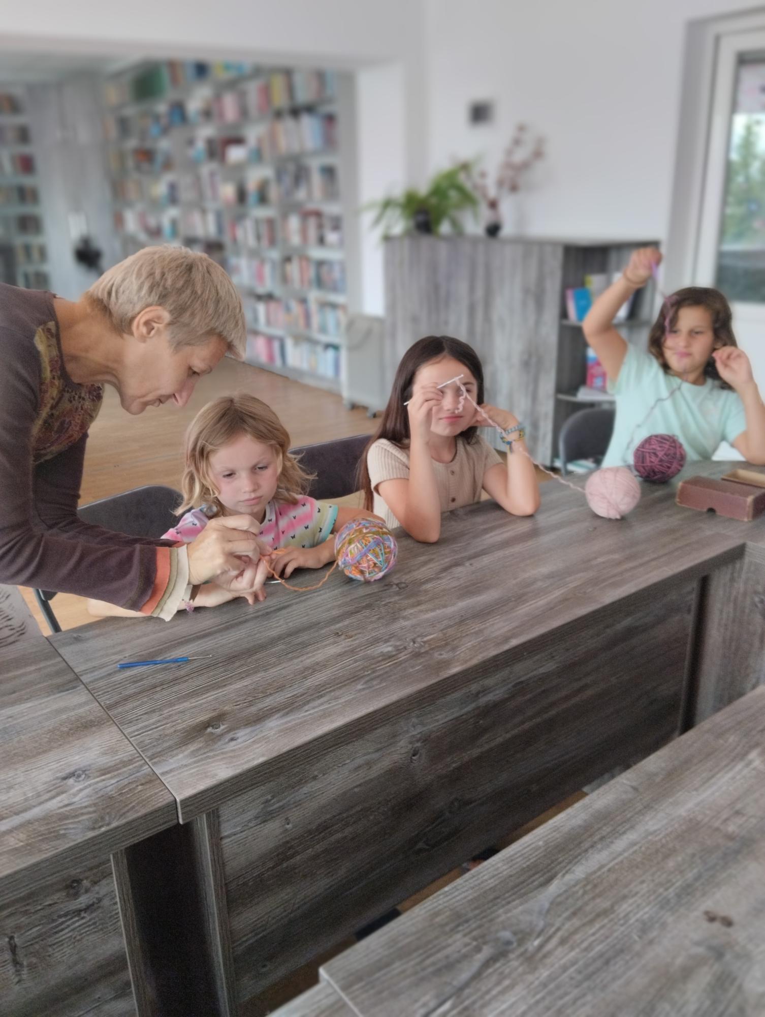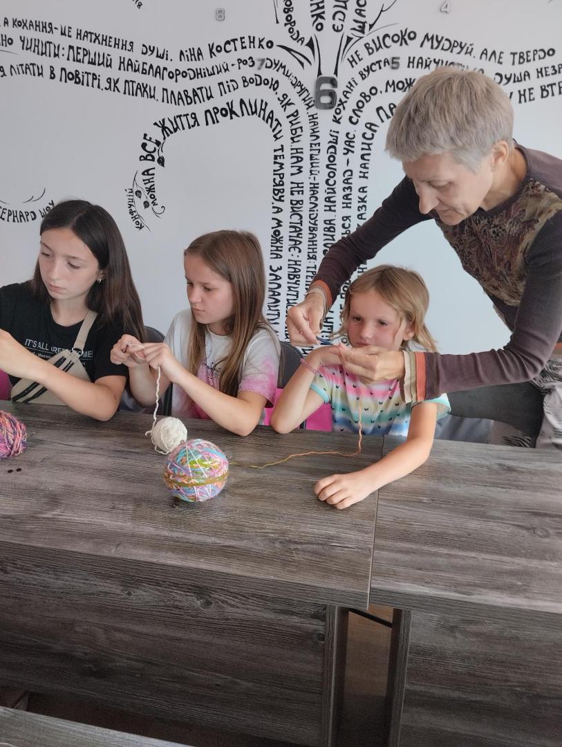 А у бібліотеці с. Гірка Полонка відбувся майстер-клас «В'язання спицями та гачком». Учні 2-7 класів знайомилися зі схемами в'язання, опановували основи гачкування. Провела заняття переселенка з Донецької області Анжела Коломойцева.