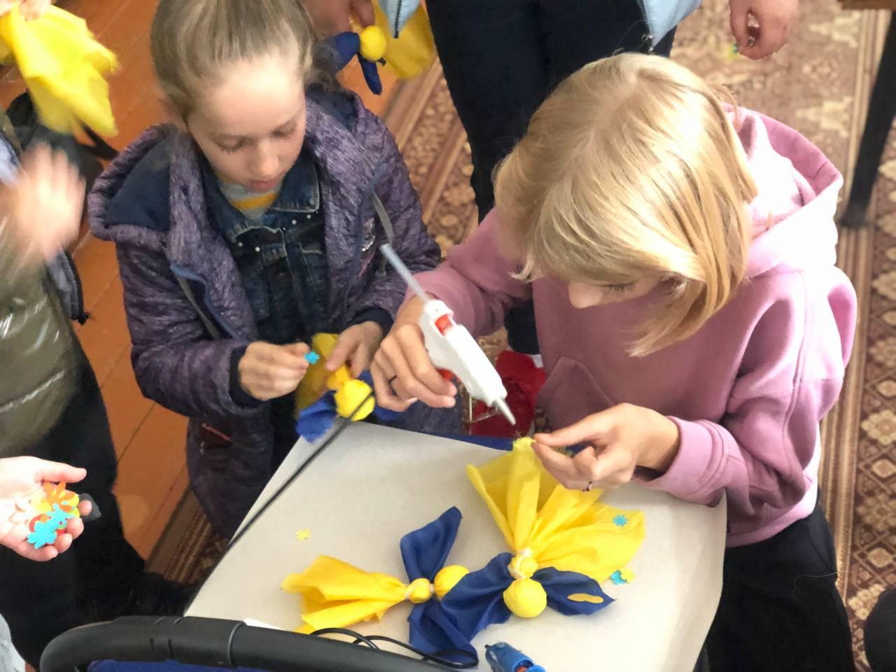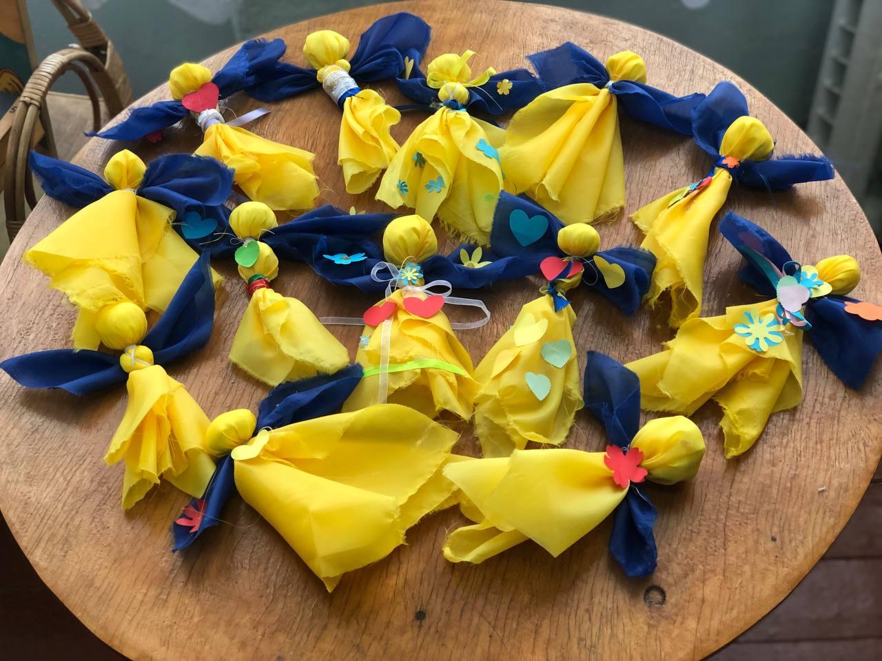 За годину натхненної та кропіткої праці маленькі волонтери виготовили кілька десятків жовто-блакитних оберегів. Унікальність ляльок-мотанок в тому, що жодна з них не схожа одна на одну і виготовлена з турботою та любов’ю.