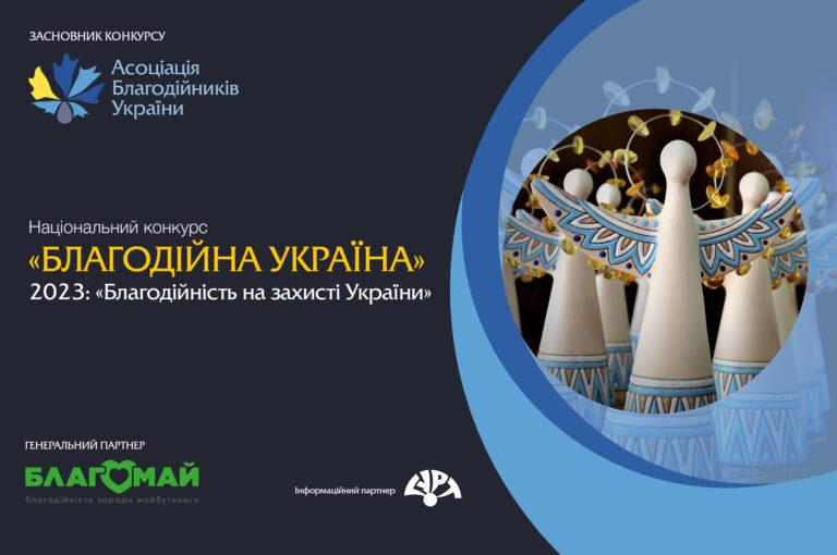 Національний конкурс «Благодійна Україна» – це загальнонаціональний проєкт з відзначення кращих благодійників та найефективніших благодійних/волонтерських ініціатив в українському суспільному просторі. В рамках цього щорічного відбору оголошено прийом заявок на національний конкурс «БЛАГОДІЙНА УКРАЇНА-2023» – «БЛАГОДІЙНІСТЬ НА ЗАХИСТІ УКРАЇНИ».