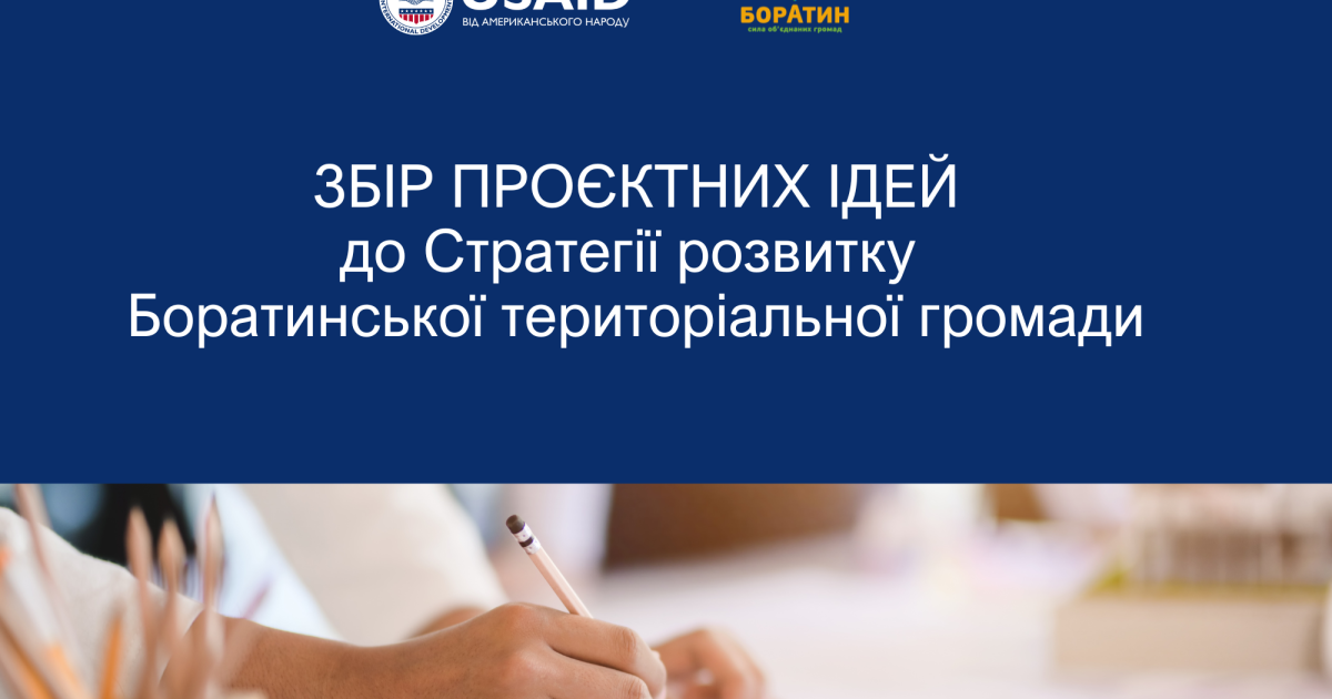 Запрошуємо усіх зацікавлених у розвитку Боратинської громади – представників місцевого самоврядування, місцевих органів державної влади, громадські організації, підприємства, установи та організації усіх форм власності – запропонувати ідею (ї) проєкту (ів), які дозволять реалізувати завдання Стратегії. Ідеї проєктів обов’язково повинні відповідати таким критеріям: