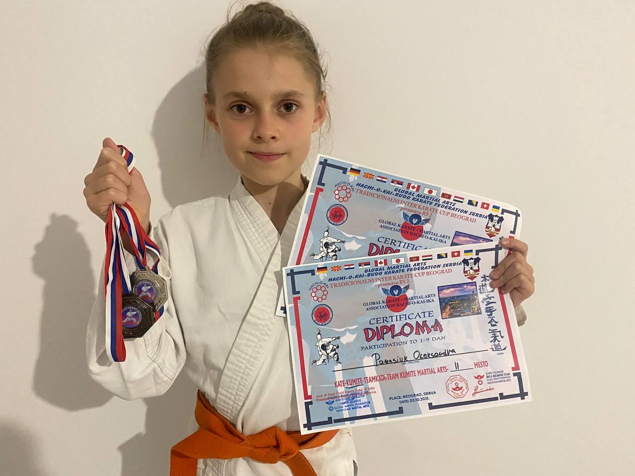 «Мені подобається карате, хоча бойові мистецтва вважають більше чоловічими видами спорту, – каже Олександра. – Люблю виступати на змаганнях і, звісно ж ,перемагати. Думаю, що в майбутньому стану як тато – професійною спортсменкою і тренеркою».
