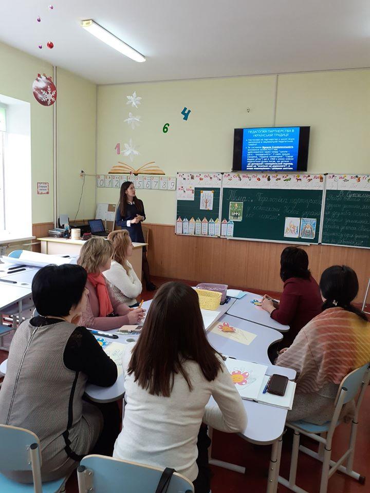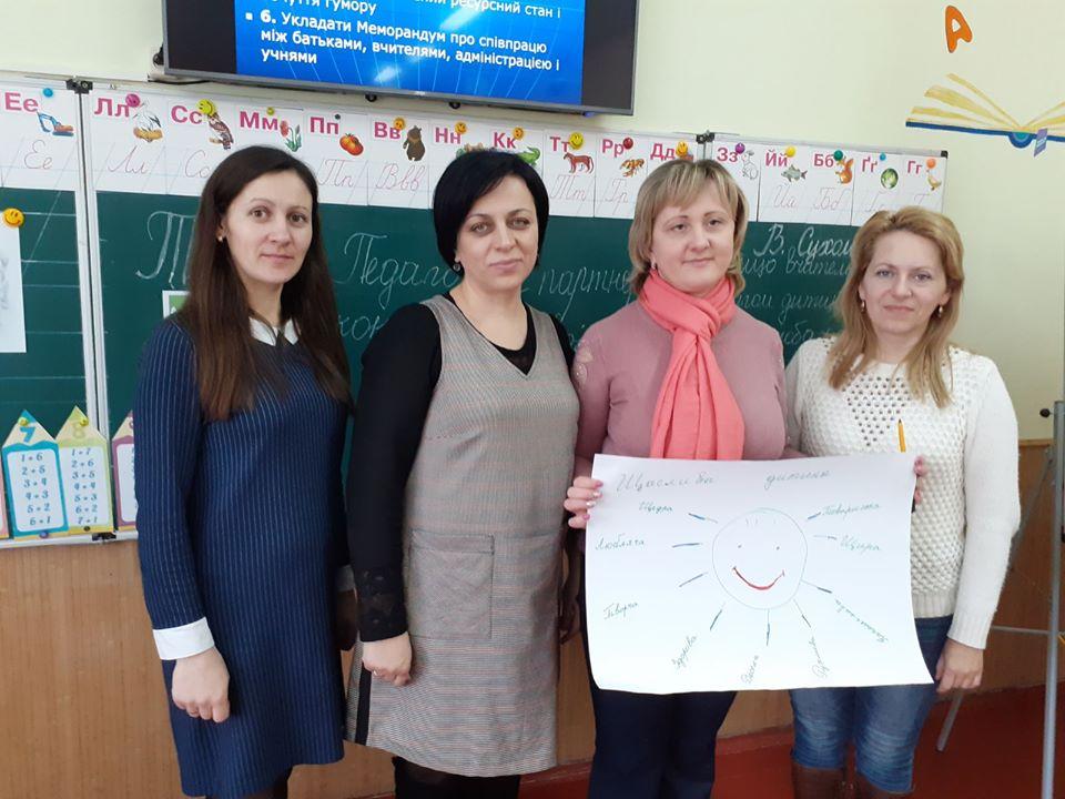 За допомогою інтерактивних вправ педагоги апробували сучасні форми співпраці та спілкування з батьками. Також у ході роботи освітяни ділилися досвідом та обмінювались думками щодо роботи в умовах Нової української школи.