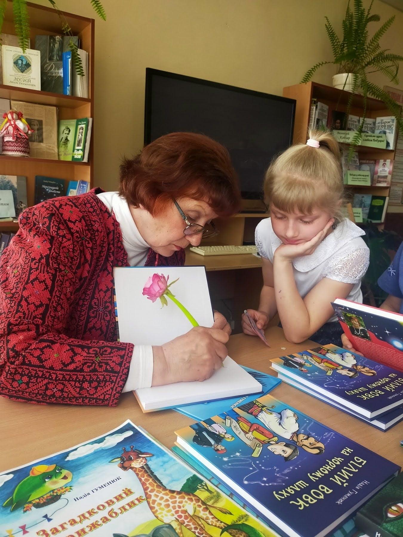 Нещодавно третьокласниця таки реалізувала свою ініціативу. На запрошення Соломії до учнів Боратинської школи завітала відома волинська поетеса, прозаїк, публіцист Надія Павлівна Гуменюк. Мисткиня слова розповіла про те, як і чому «народилися» її перші твори, де черпає натхнення, поділилася враженнями від перемог на різноманітних літературних конкурсах. Школярі з захопленням слухали уривки творів Надії Павлівни, а також мали нагоду задати питання поетесі. Зустріч видалася не лише надзвичайно пізнавальною, але й дуже щирою та емоційною.
