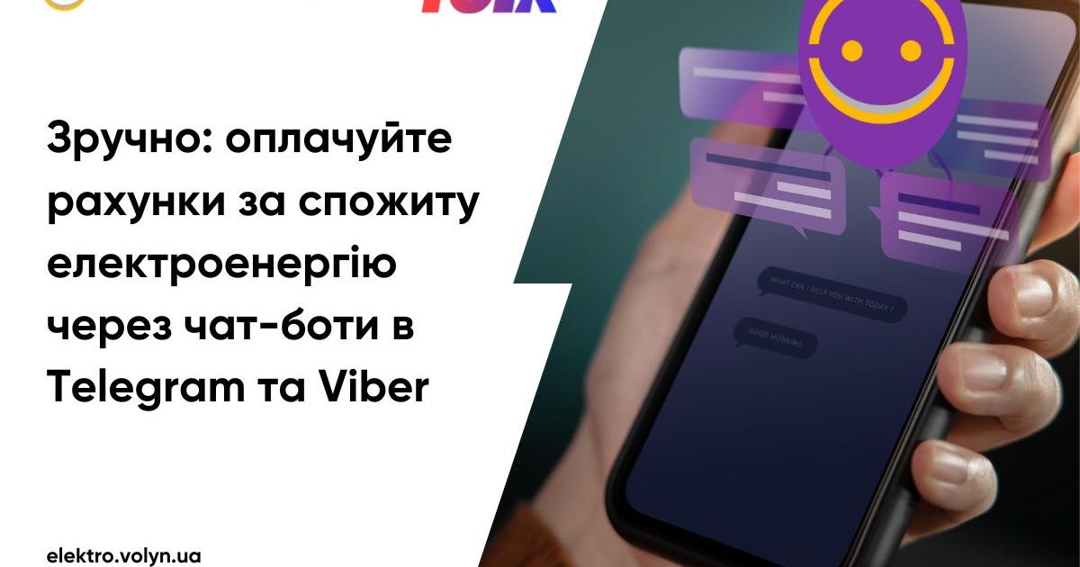 ТОВ «Волиньелектрозбут» (Група Tolk) розробляє та запроваджує зручні сервіси: відтепер побутові споживачі можуть не лише бачити нарахування, а й швидко, зручно і без комісії оплачувати рахунки за спожиту електроенергію через чат-боти в найпопулярніших месенджерах – Viber та Telegram.