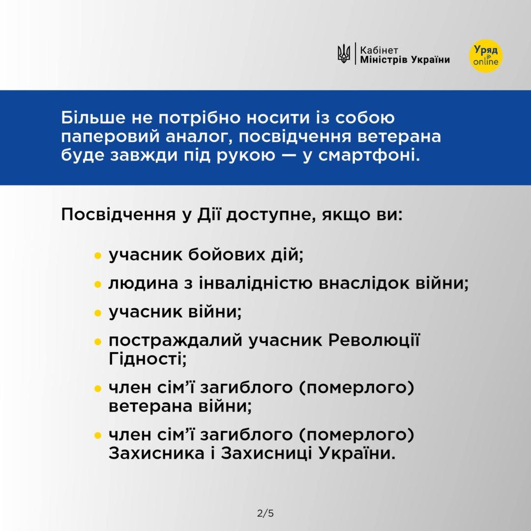 Серед головних пріоритетів Уряду – діджиталізація ветеранських послуг. е-Посвідчення ветерана уже доступне у Дії. Більше не потрібно носити із собою паперовий аналог, тепер документ завжди під рукою – у смартфоні.