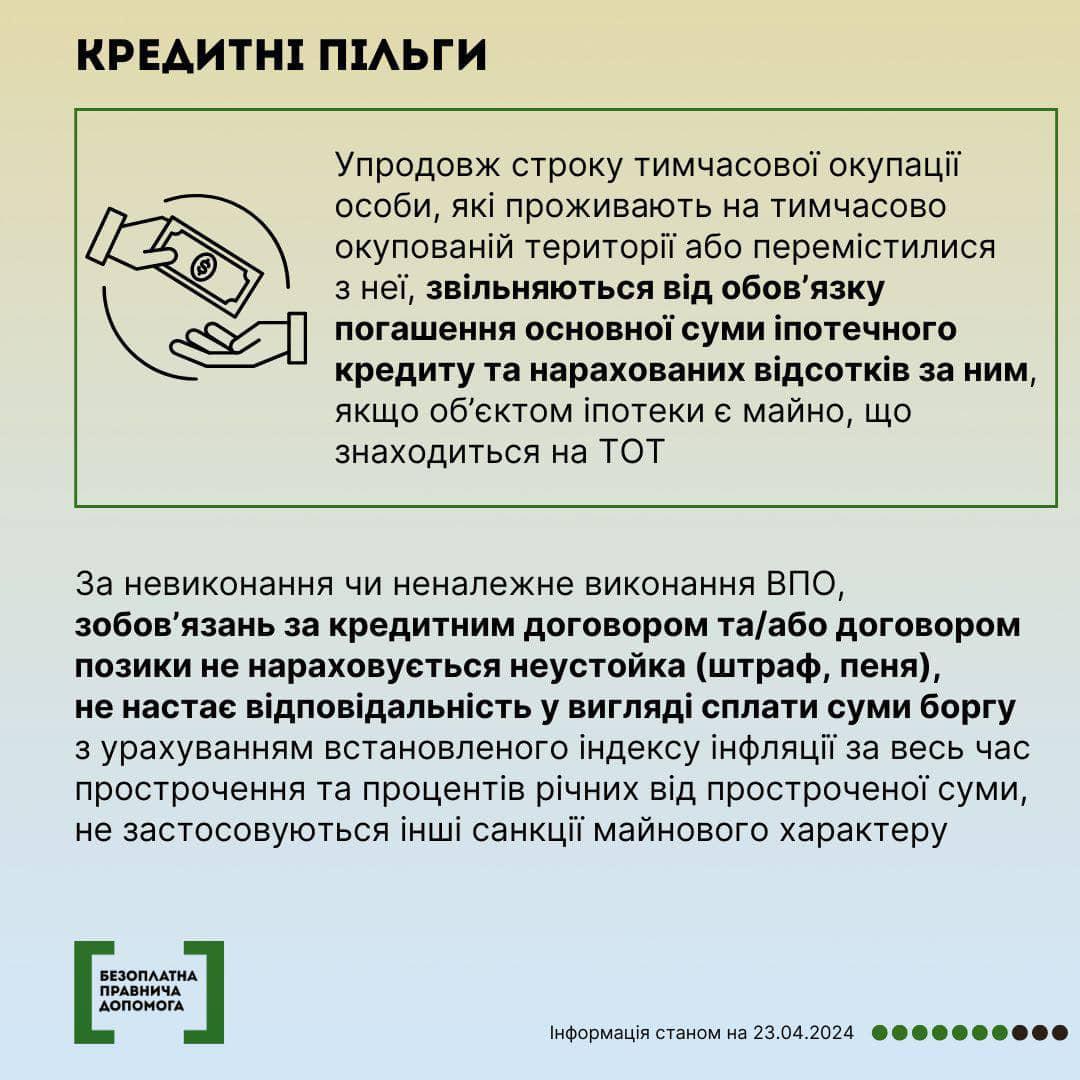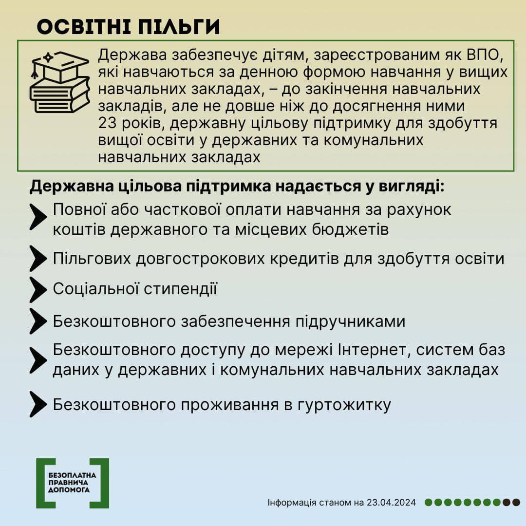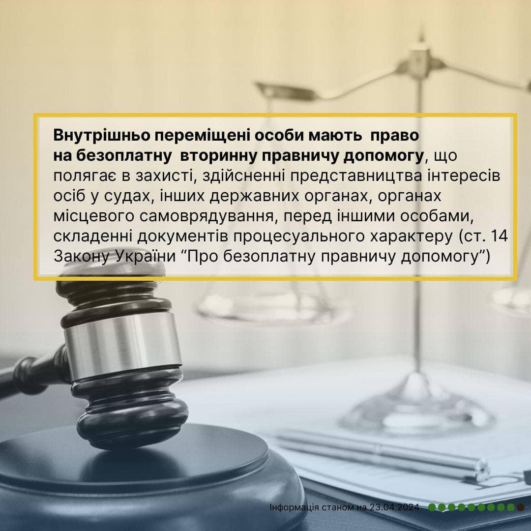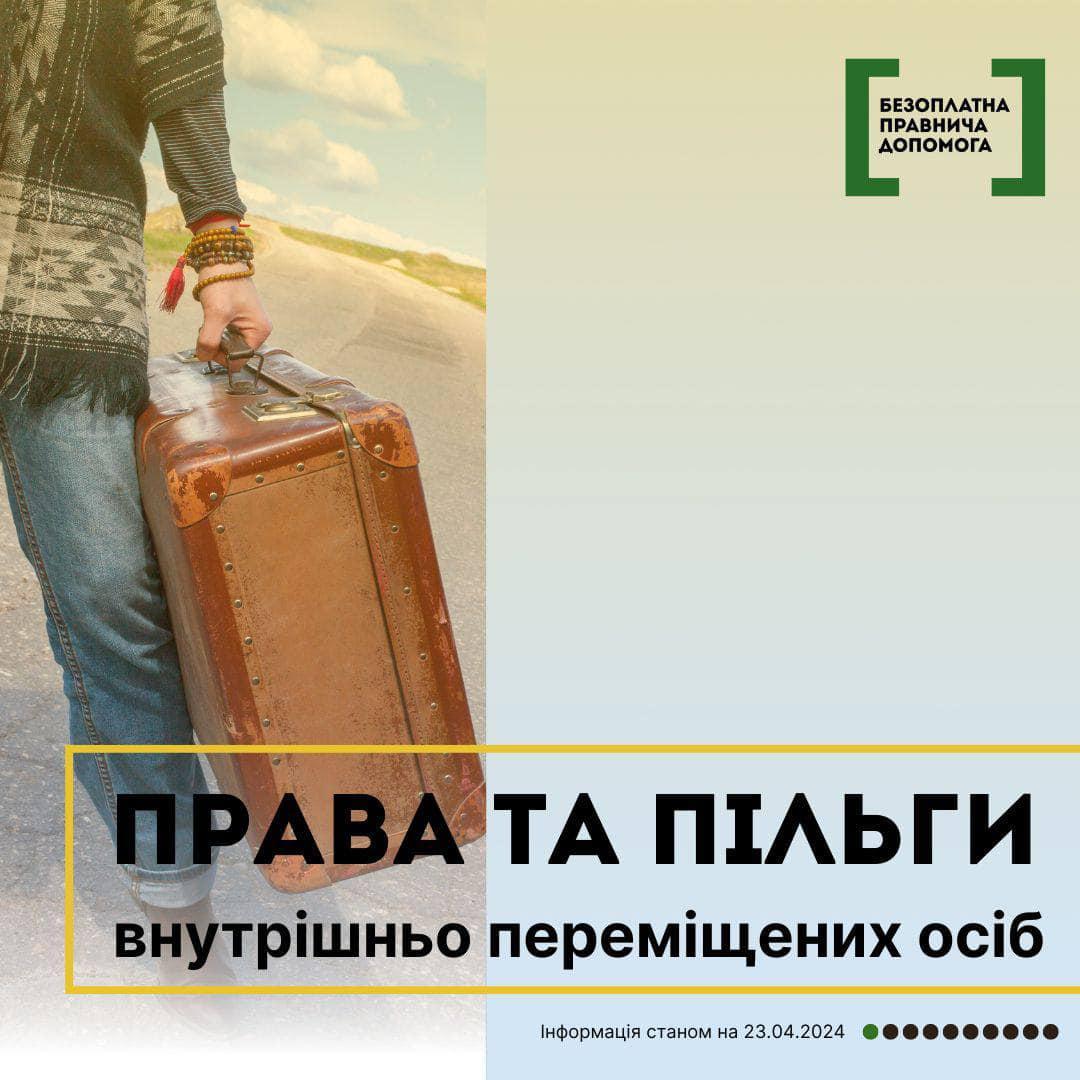 Більше про права та пільги для внутрішньо переміщених осіб на сайті: https://legalaid.gov.ua/publikatsiyi/prava-ta-pilgy-vnutrishno-peremishhenyh-osib/