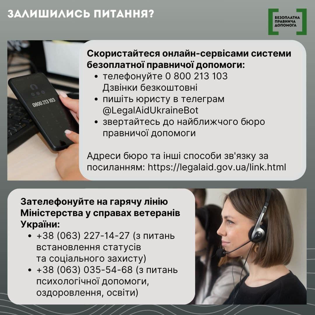 0 800 213 103 Контакт-центр системи безоплатної правничої допомоги (будні з 8:00 до 18:00). Дзвінки зі стаціонарних та мобільних телефонів у межах України безкоштовні.
