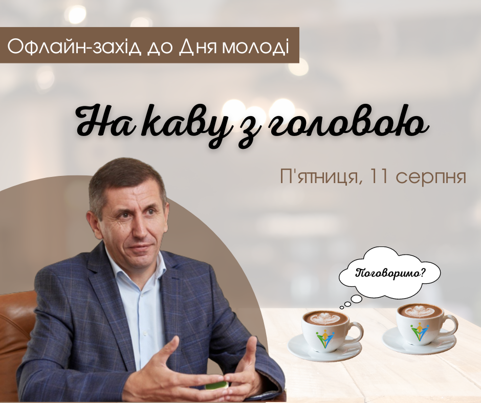 У цю пятницю, 11 серпня, до Дня молоді відбудеться діалоговий офлайн-захід «На каву з головою». Запрошуємо активних представників молодіжної спільноти (від 14 до 35 років) поділитися свіжими ідеями та власним баченням вирішення актуальних проблем у громаді, задати свої питання та почути відповіді голови Боратинської громади — Сергія Яручика.