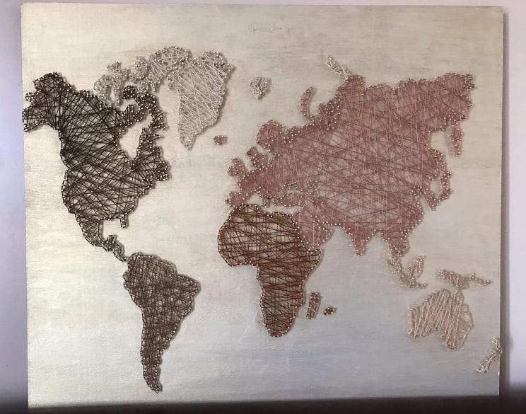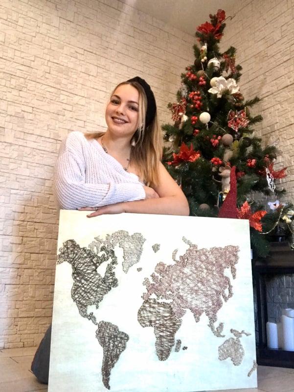 Героїня нашої статті – Ірина також вчителька за фахом, розповідає, що почала займатися таким незвичним мистецтвом зовсім випадково: «Вперше взяла до рук цвяхи та нитки, коли переїхала у новий будинок. Вирішила сама зайнятися дизайном, хотіла, аби це було щось незвичайне та нове. Почала пошуки в Інтернеті, натрапила на цю доволі цікаву техніку і вирішила спробувати. Так з’явилася моя перша картина – карта світу».