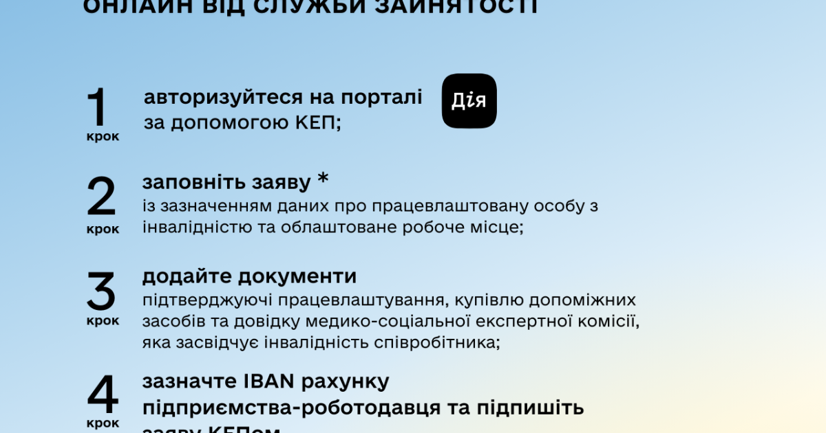 Відтепер подати заяву на отримання компенсації за облаштування робочого місця для працівника з інвалідністю можна онлайн лише за 4 кроки.