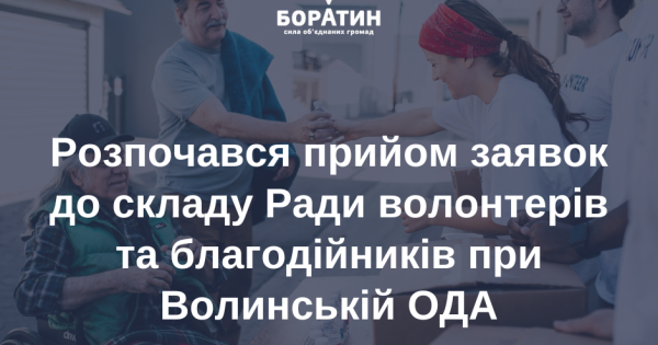 Волинська ОДА повідомляє, що для забезпечення ефективної підтримки благодійної діяльності в області, координації взаємодії між інститутами громадянського суспільства волонтерського та благодійного напрямку діяльності, місцевими органами виконавчої влади та органами місцевого самоврядування при Волинській обласній державній (військовій) адміністрації буде створена Рада волонтерів та благодійників.