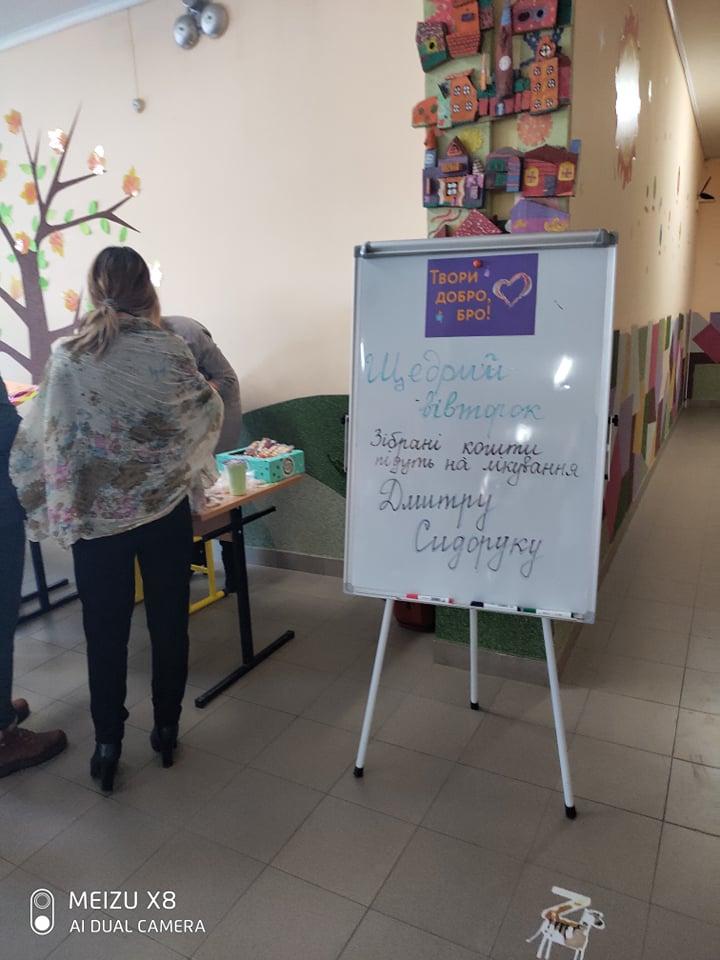 Юнак родом з Городища, хоча зараз проживає у Луцьку. 7 жовтня Дмитро потрапив у ДТП, 10 днів перебував у комі та переніс кілька операцій. Зараз хлопець потроху відновлюється, однак потребує дороговартісної реабілітації та лікування. Школярі радіють, що їм вдалося реалізувати благодійну ініціативу та бажають Дмитру якнайшвидшого одужання.
