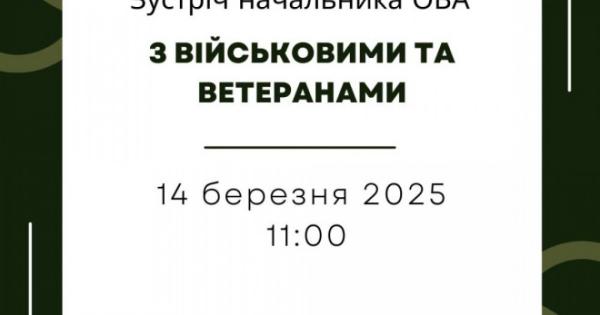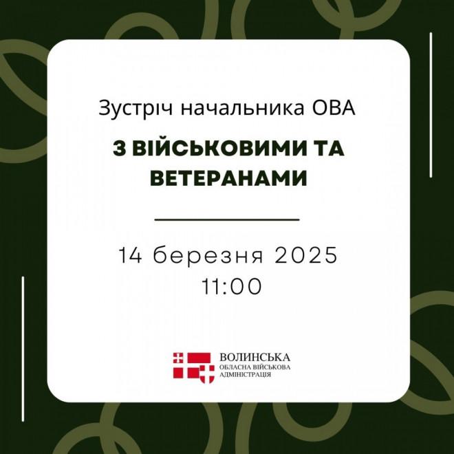 Сьогодні, 14 березня, об 11:00 годині, очільник Волинської області Іван Рудницький проведе щомісячну зустріч із військовими та ветеранами.