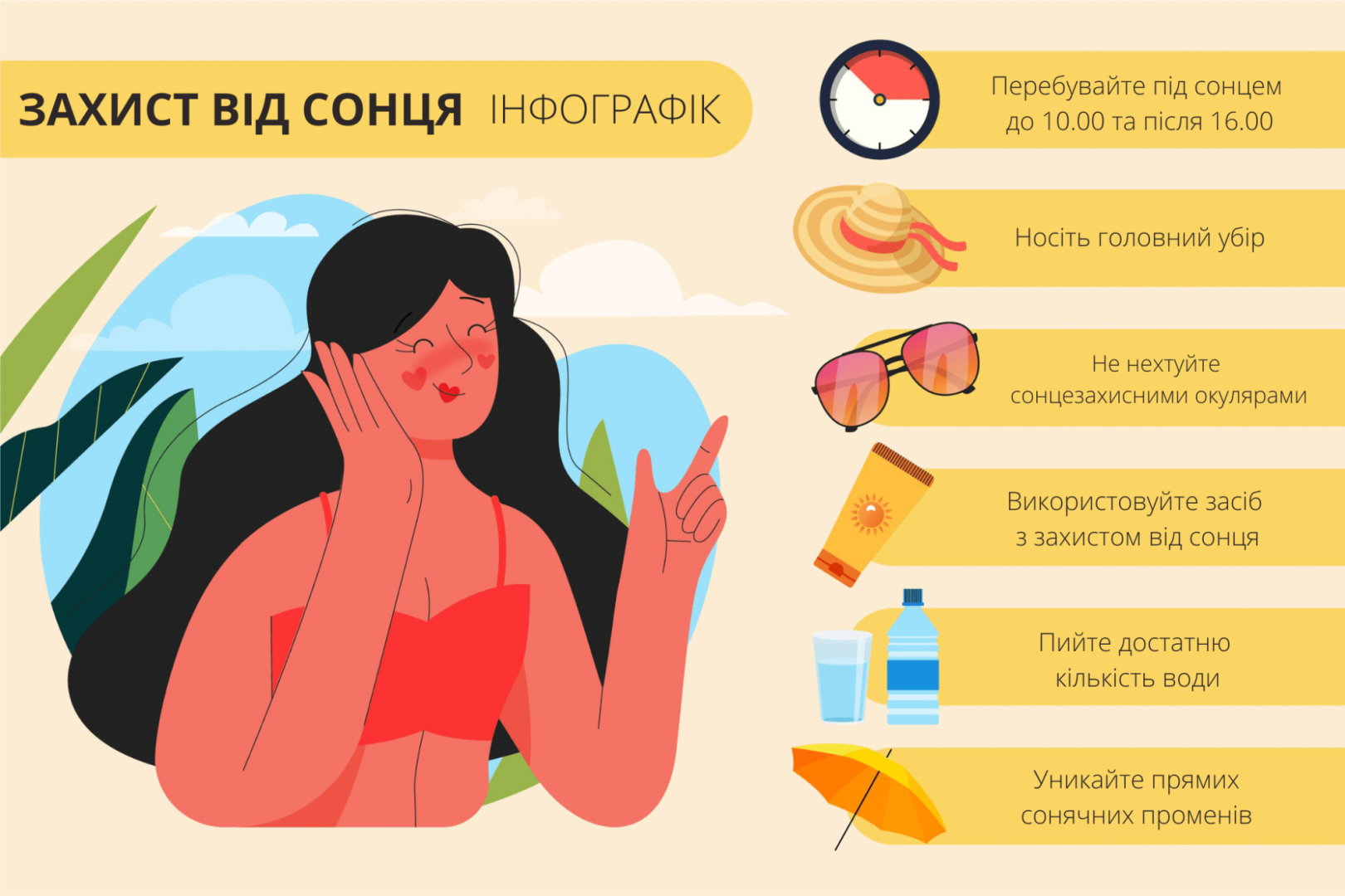 В останні дні в Україну знову повернулася спека. У цей час важливо пам’ятати про шкідливий вплив сонячних променів на шкіру. Це важливо, адже вони можуть призвести до довготривалих негативних наслідків: передчасного старіння та підвищення ризику раку шкіри. Не забувайте також, що опіків може зазнати будь-яка частина тіла – навіть мочки вух, губи і шкіра голови. МОЗ підготувало поради, як вберегтись від опіків та як діяти, якщо вони вже стались.