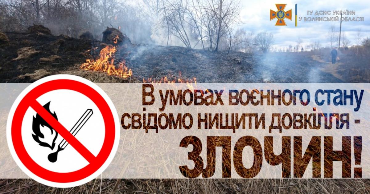 Рятувальники нагадують про заборону паління сухої рослинності та застерігають, що відтепер такі дії розцінюються як кримінальний злочин, який передбачає покарання у вигляді ув'язнення строком від 10 до 15 років з конфіскацією майна.