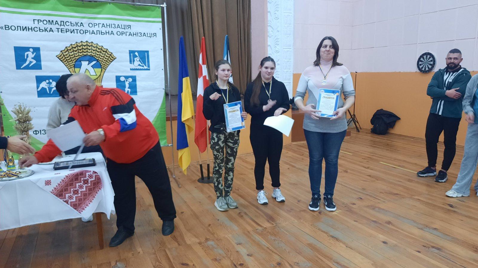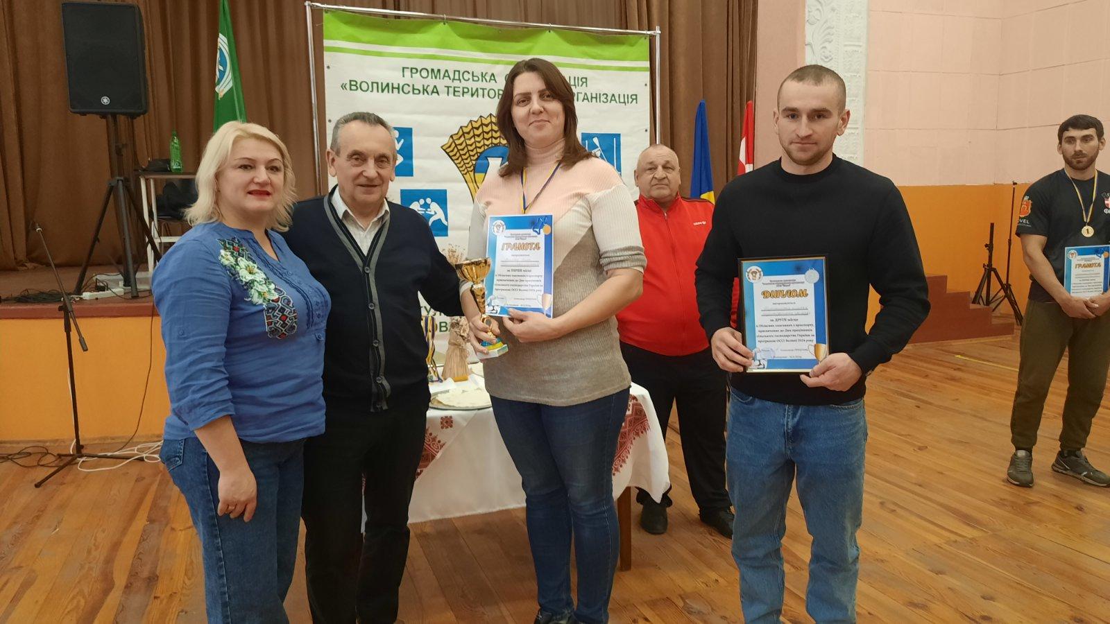 На третьому місці завершили свої виступи Валентина Кривчук з Новостава (шашки), Микола Ткач з Лаврова (шахи) та Олександр Кузьмін з Голишева (гирьовий спорт).