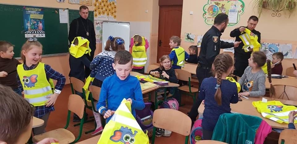 У рамках акції «Світлодіти: збережи життя на дорозі» працівники патрульної поліції вручили другокласникам Баївської школи світловідбиваючі жилети та браслети. Поліцейські в інтерактивній формі нагадали учням правила дорожнього руху, розповіли як потрібно поводитись на дорозі і чому у вечірню пору важливо носити світловідбиваючі елементи.