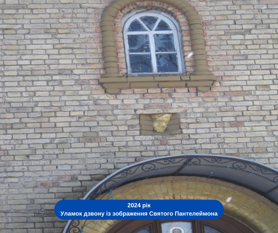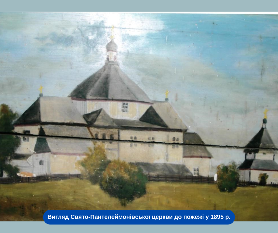 У притворі церкви, справа від вхідних дверей, напис: «Року божого 1900 коштом Синоду і пожертви побожних християн збудовано цю святу церкву на честь Святого Великомученика Пантелеймона».