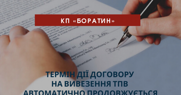 Комунальне підприємство «Боратин» інформує про продовження терміну дії договору на вивезення твердих побутових відходів: