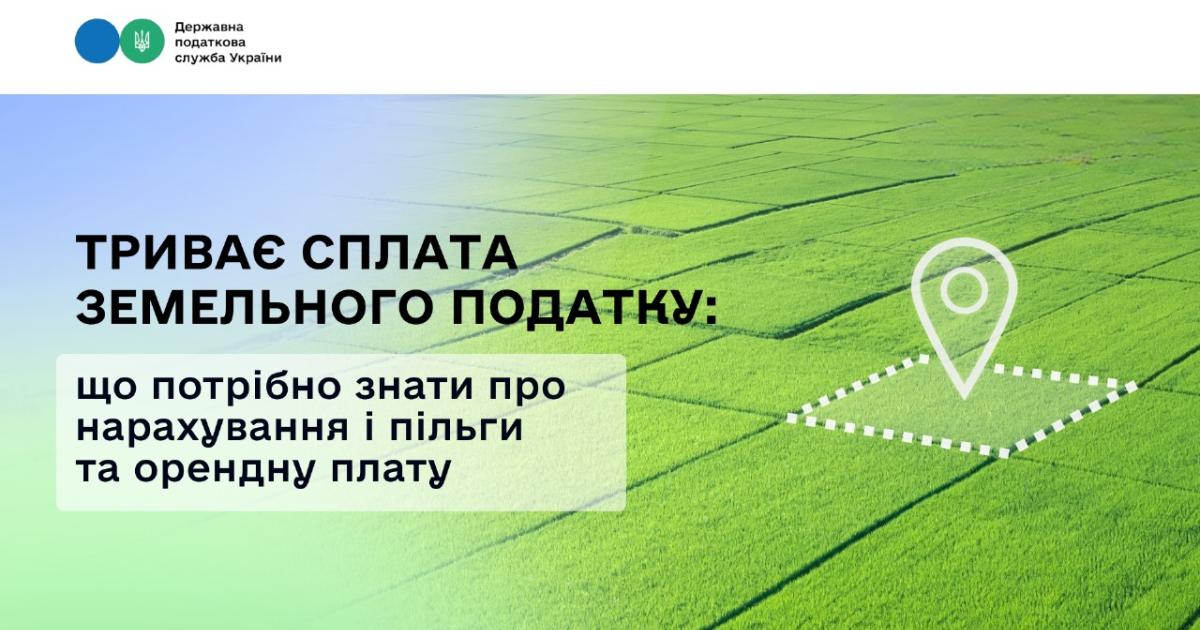 Державна податкова служба України нагадує, що плата за землю – це обов’язковий платіж у складі податку на майно. Вона здійснюється у двох формах: