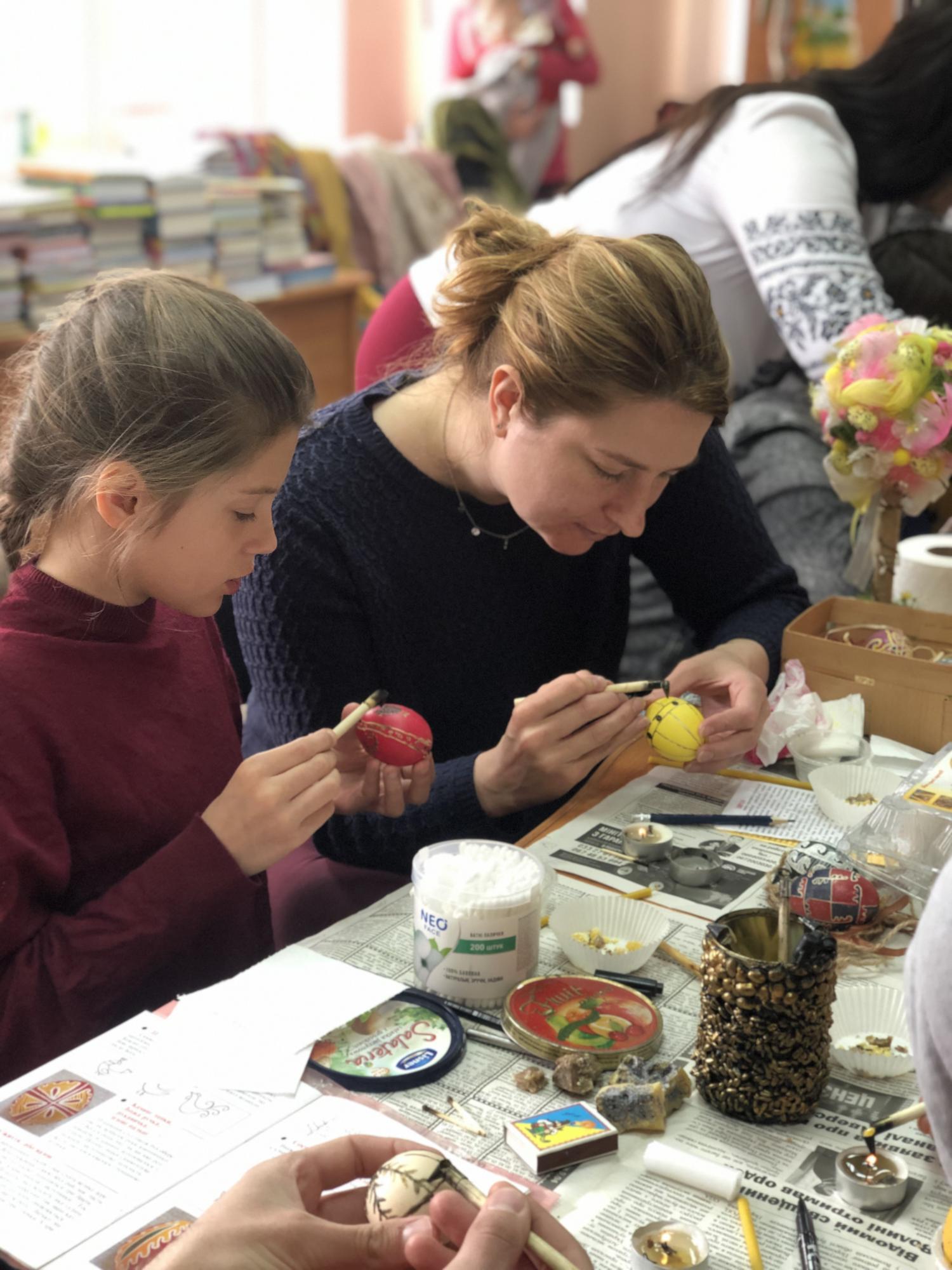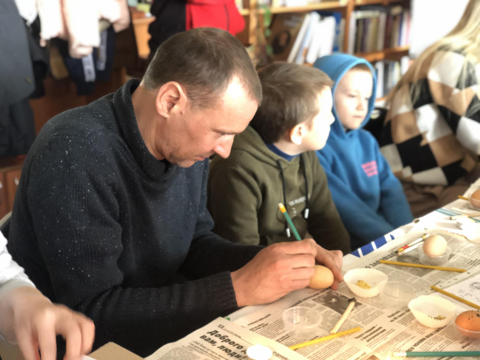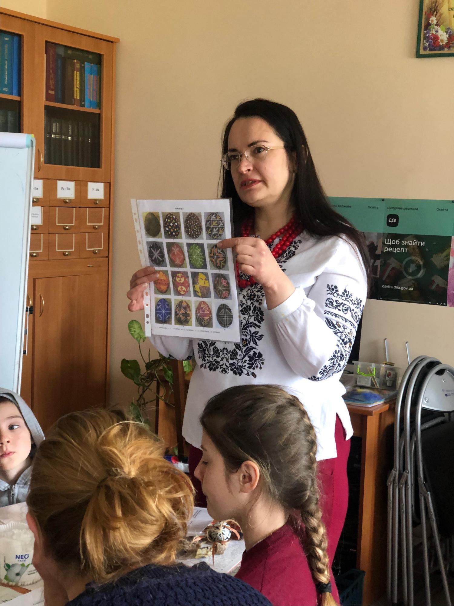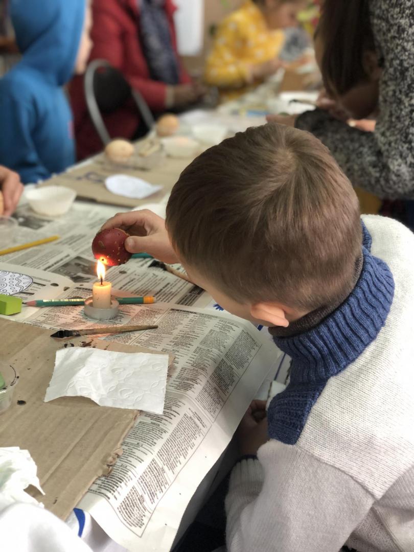 Сакральне дійство – майстер-клас із розпису писанок провела художниця, мисткиня Ольга Навротюк. Дорослі та діти дізнавалися про технологію написання писанки та історію цього ремесла, вивчали значення кольорів та символів на великодніх яйцях, а також створювали власні писанки з вірою у перемогу добра над злом та з надією на мир.