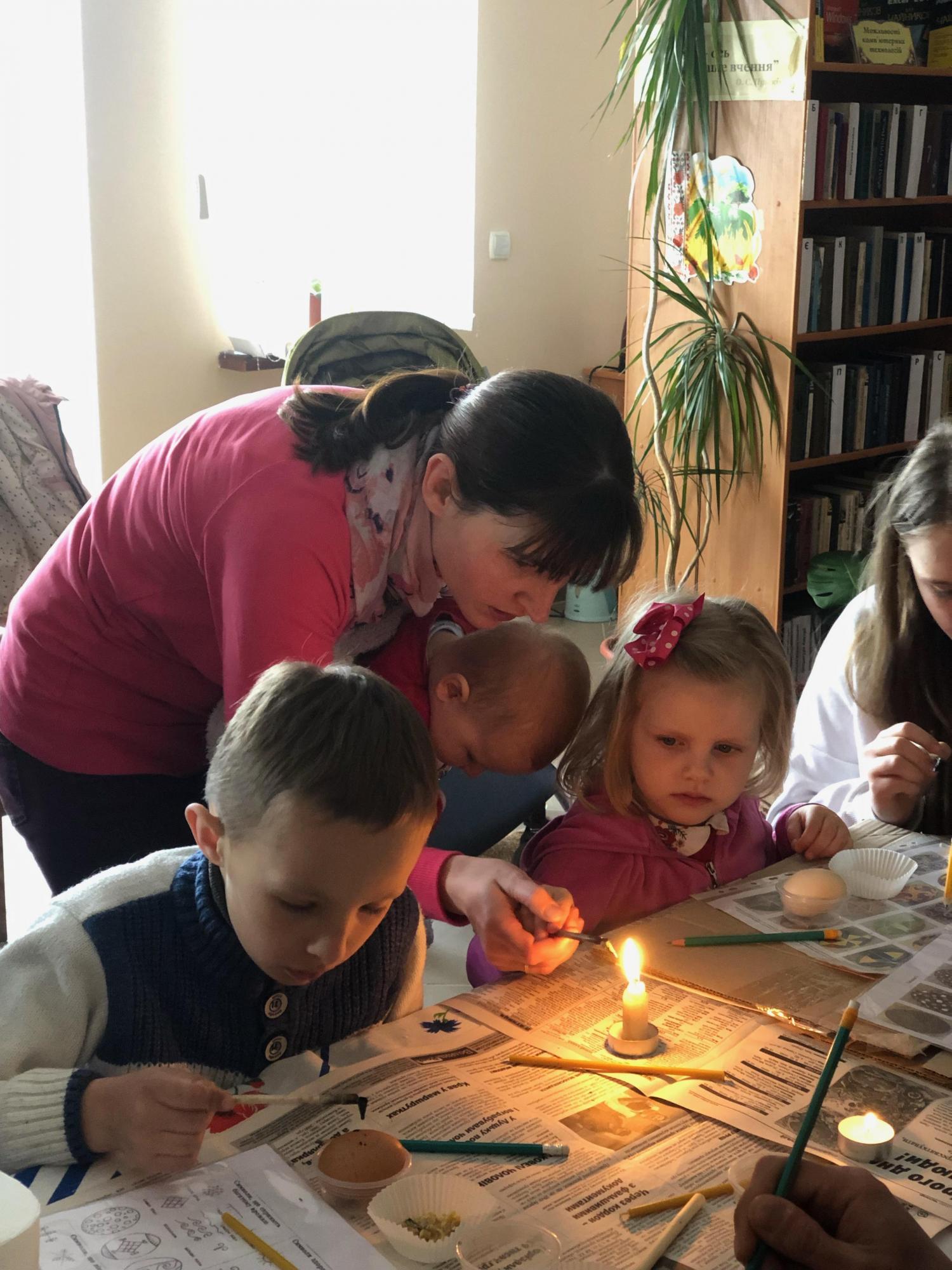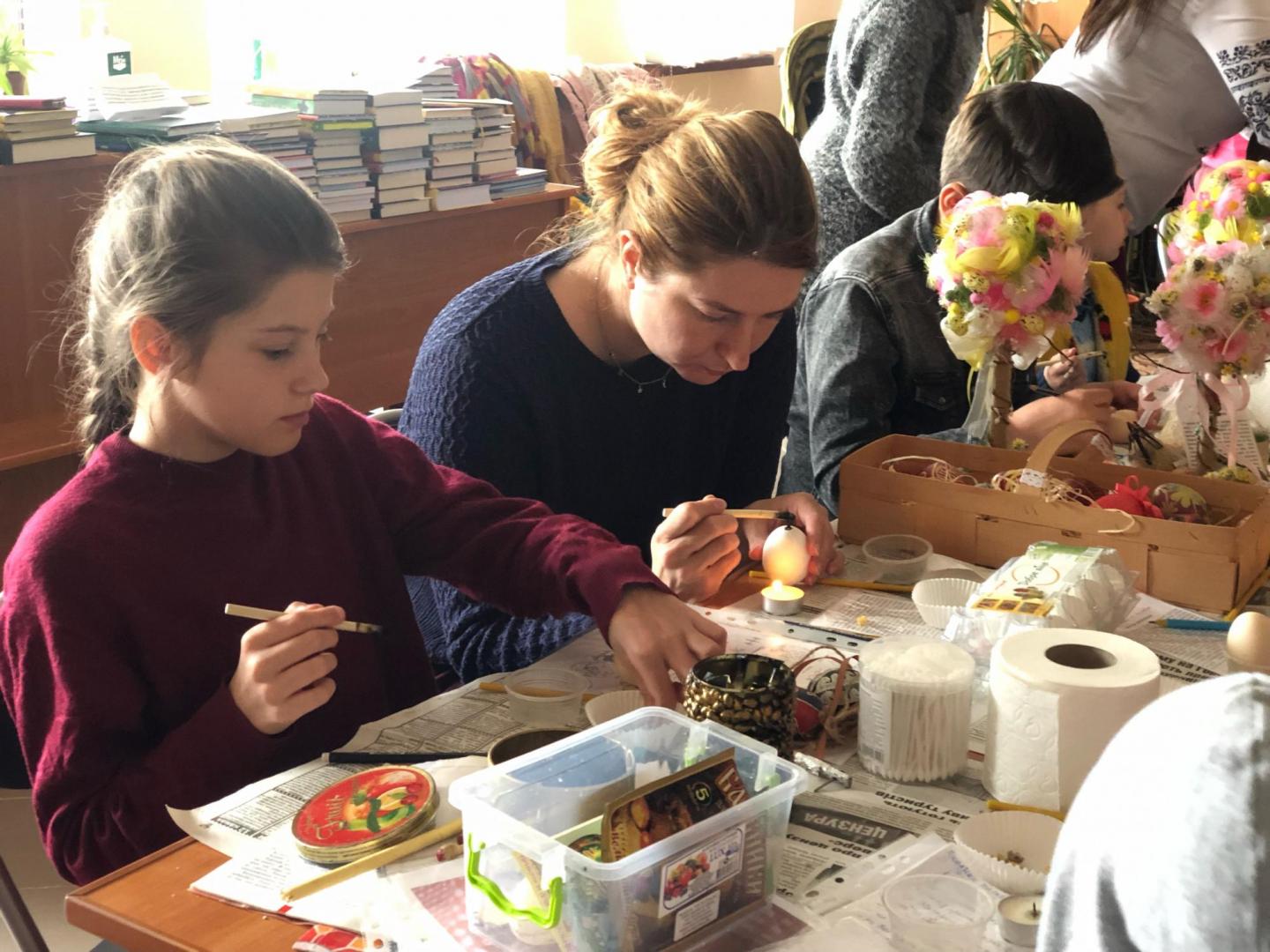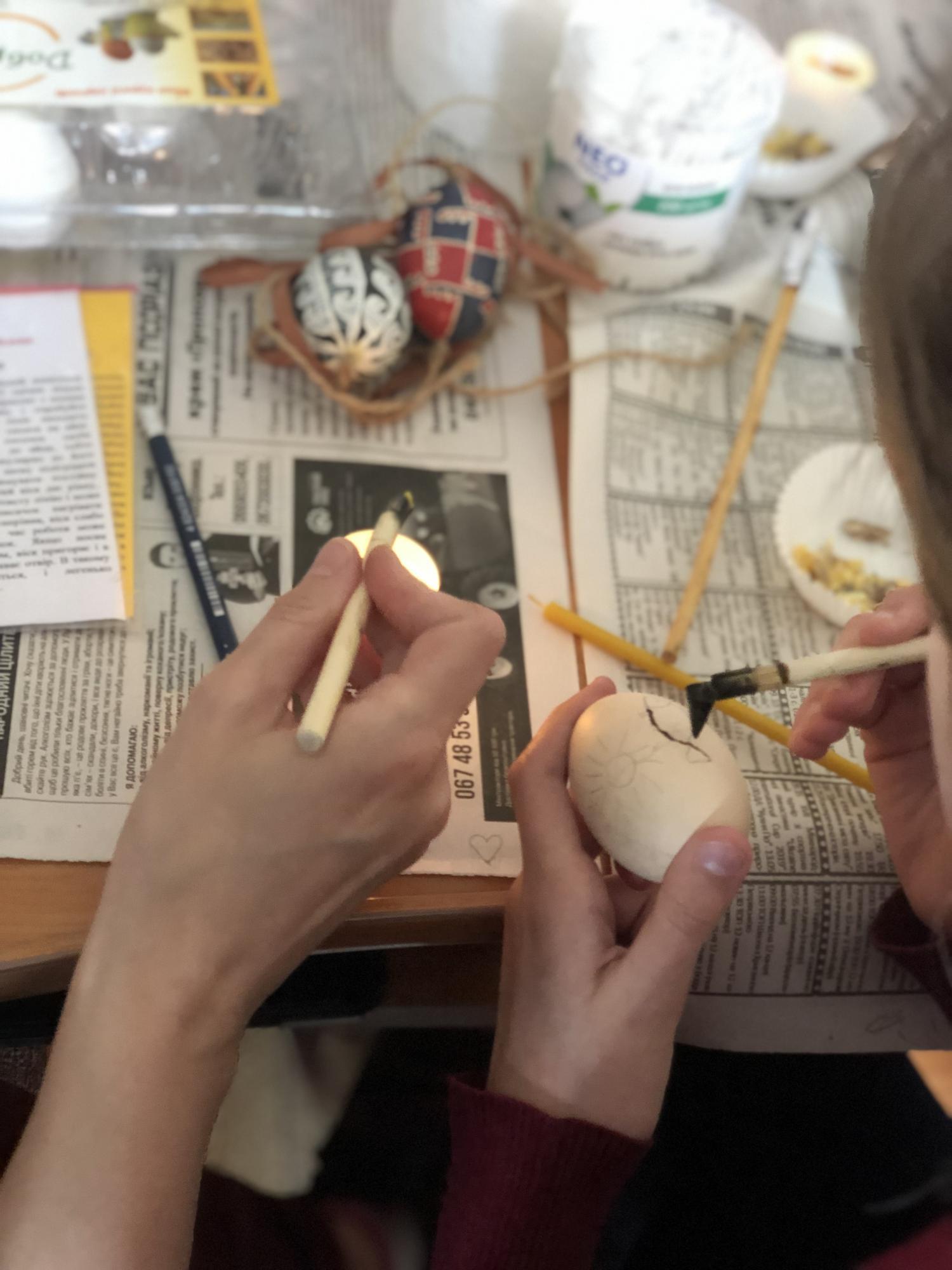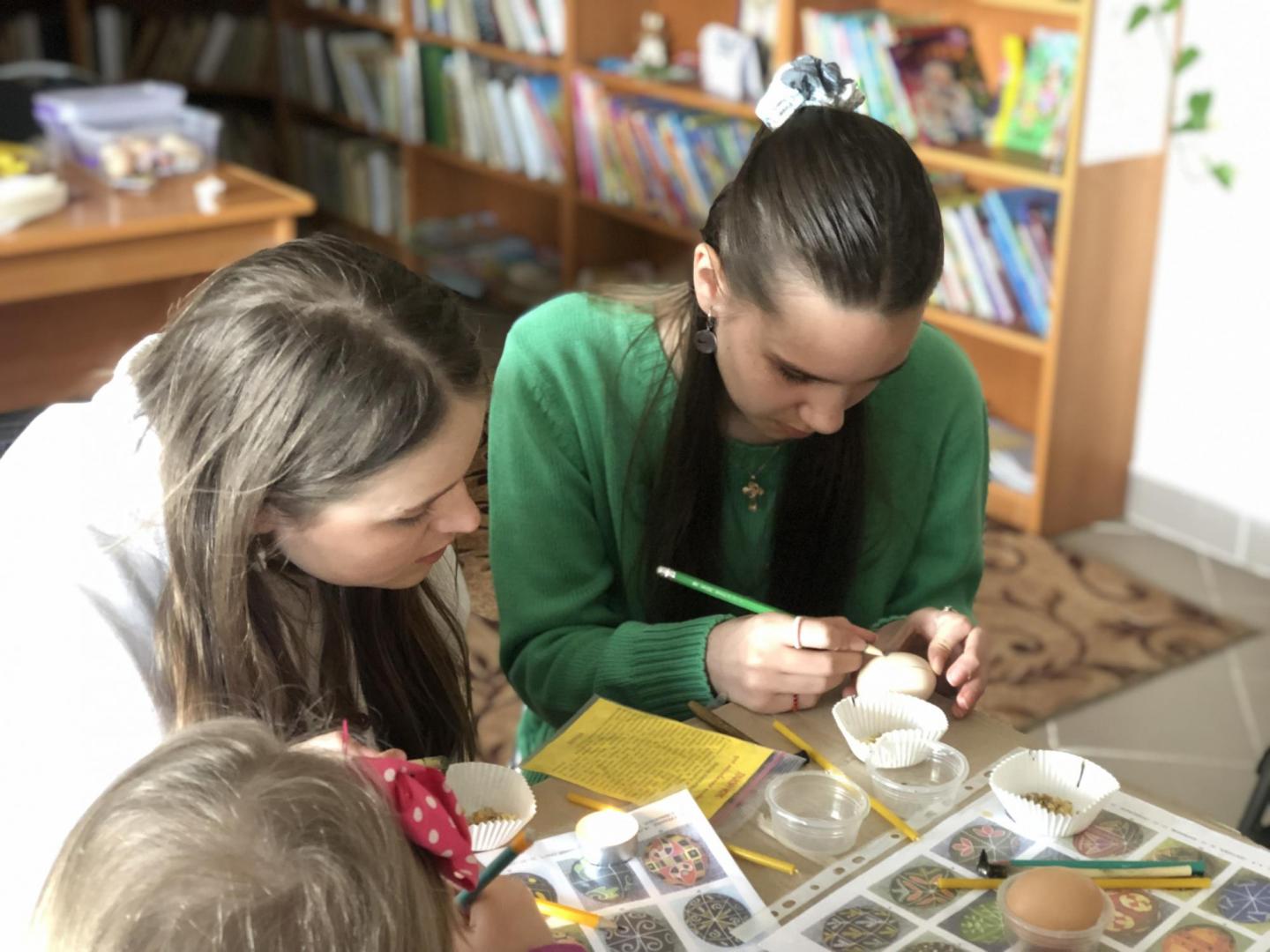 Сакральне дійство – майстер-клас із розпису писанок провела художниця, мисткиня Ольга Навротюк. Дорослі та діти дізнавалися про технологію написання писанки та історію цього ремесла, вивчали значення кольорів та символів на великодніх яйцях, а також створювали власні писанки з вірою у перемогу добра над злом та з надією на мир.