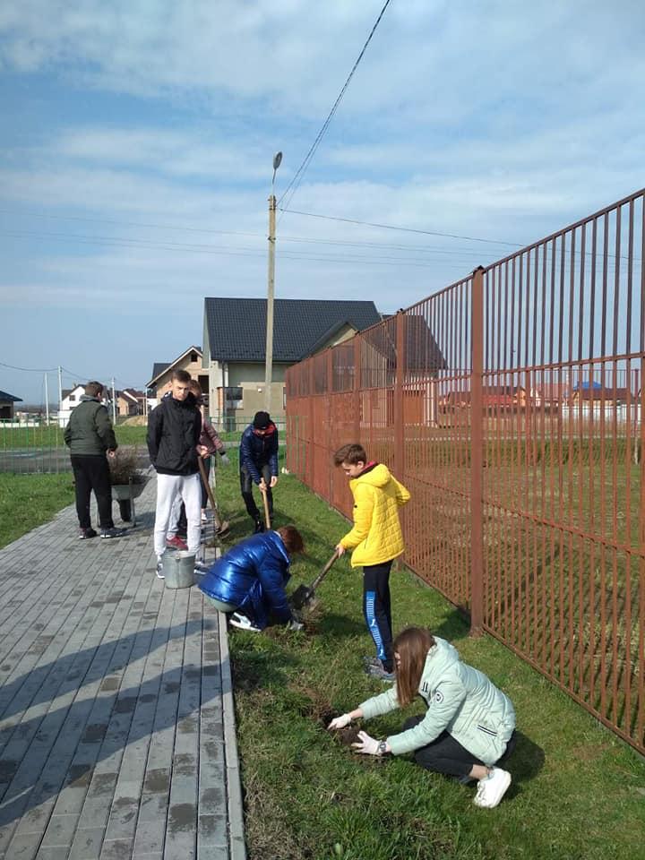 У Боратинській школі вирішили відзначити свято, організувавши акцію із озеленення. Школярі продовжили роботи із облаштування квіткової алеї і висадили ще 40 кущів лапчатки. Нагадаємо, створення алеї у своїй школі ініціювала восьмикласниця Анна Макаренко з Боратина. Ідея реалізувати екологічну ініціативу виникла у школярки під час участі у програмі «Ініціативна молодь».