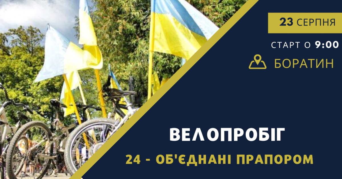Велопробіг приурочений до Дня Державного Прапора та Дня незалежності України – велосипедна подія, що вже стала хорошою традицією у Боратинській громаді. Цьогоріч захід також відбудеться, але вже під назвою «24 – об’єднані прапором», адже наша громада стала більшою і налічує 24 населених пункти. Велолюбителі провезуть жовто-блакитний стяг найвіддаленішими та наймальовничішими куточками нашої громади. Буде ще цікавіше та драйвовіше.