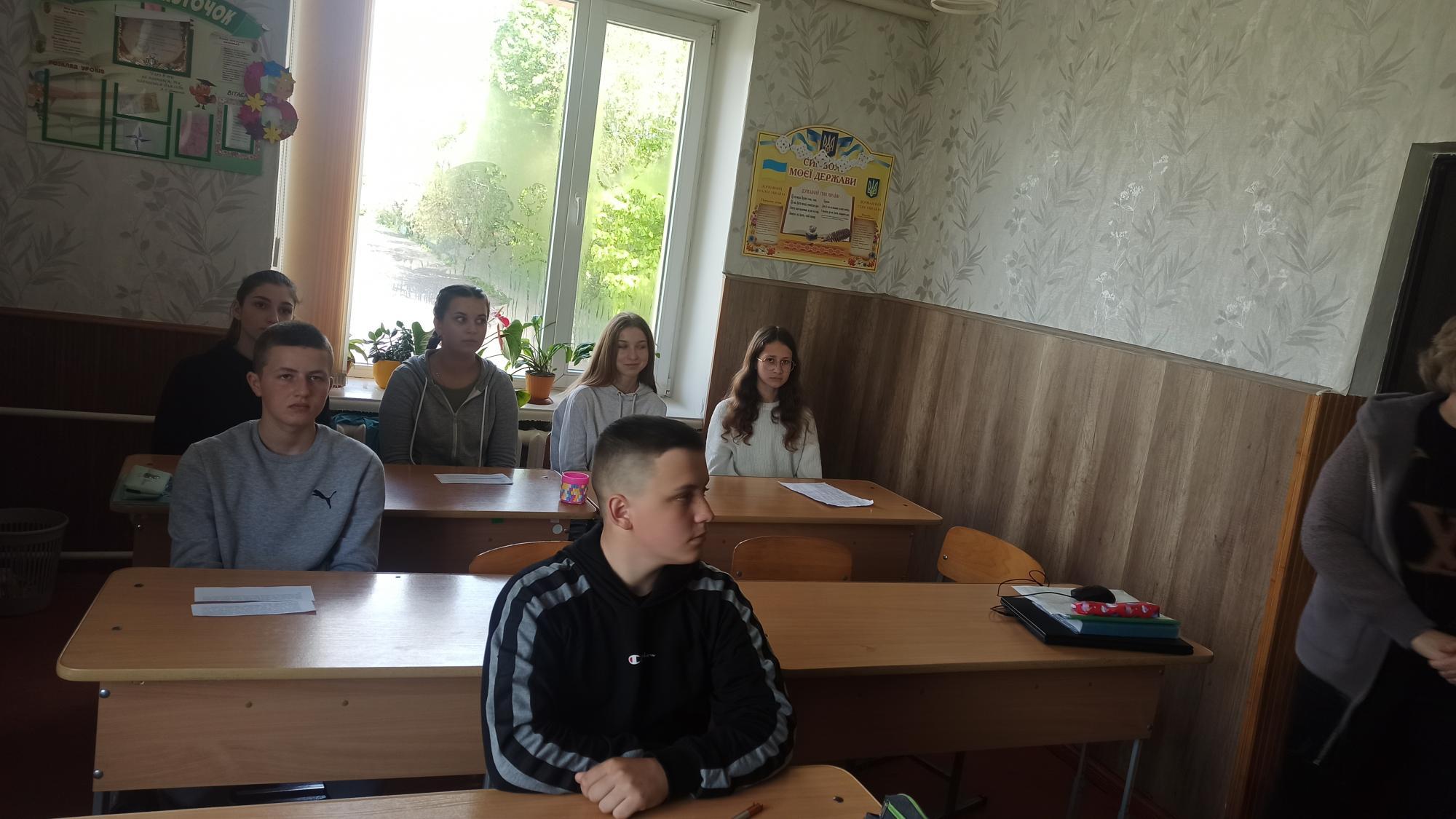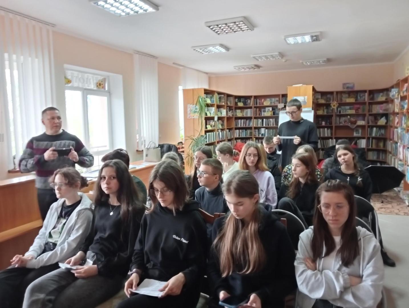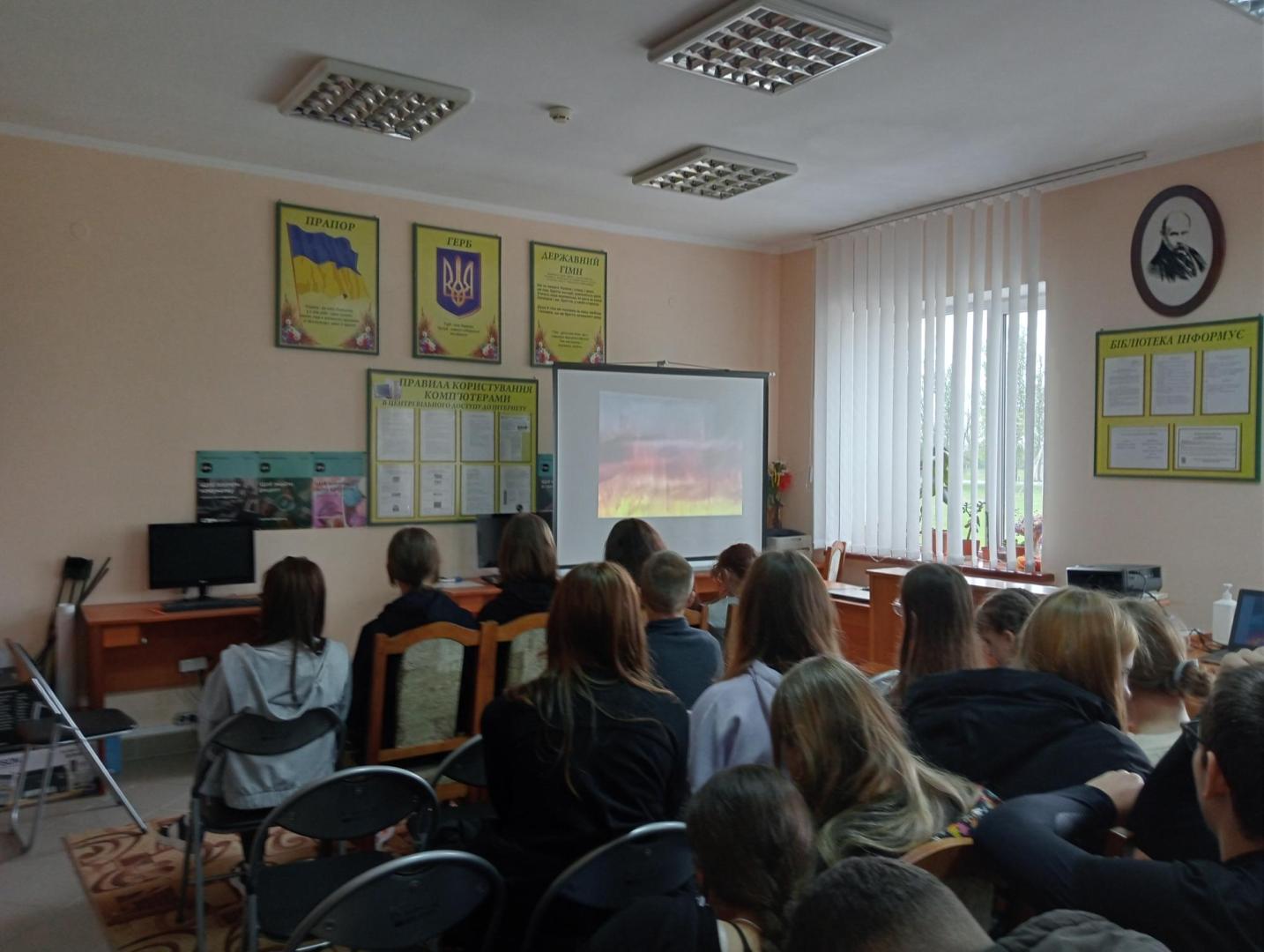 До 38-річниці Чорнобильської трагедії, бібліотекар села Радомишль Людмила Демчук провела урок-реквієм «Порожня зона - край мовчання», з учнями 7 класу Радомишльського ліцею.