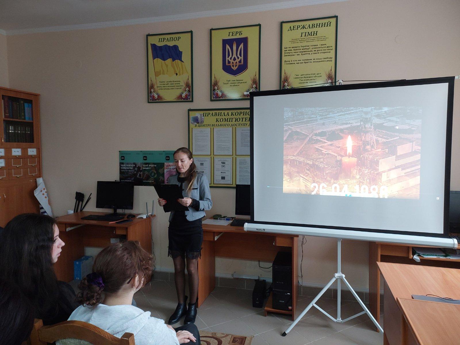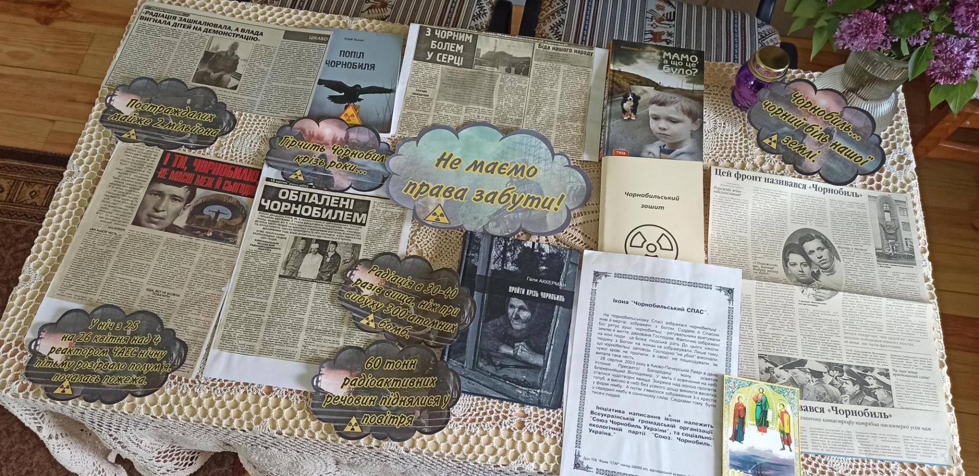 Бібліотекарі громади підготували тематичні полички книг про Чорнобильську трагедію, у яких детально описуються події на ЧАЕС у день аварії, про подвиг ліквідаторів-чорнобильців, про гіркі наслідки катастрофи для України.