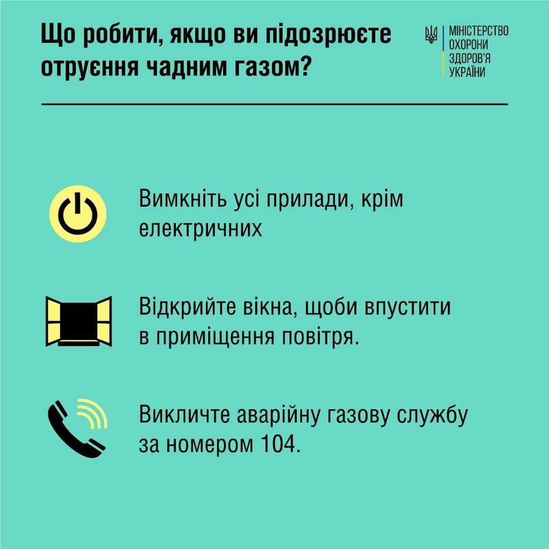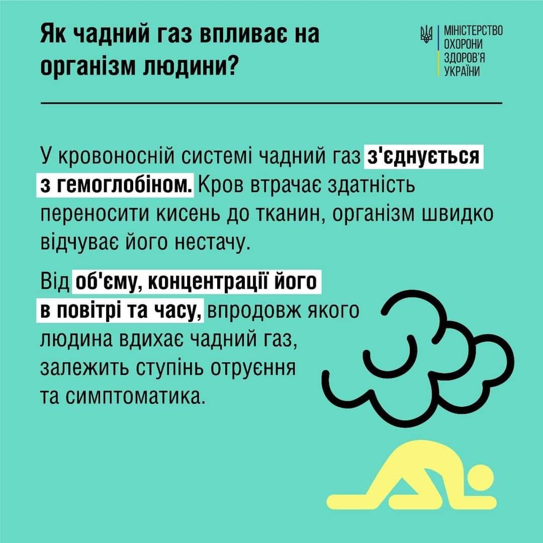 Пам’ятайте: чадний газ неможливо побачити чи відчути на запах. Без спеціального обладнання не можна визначити його концентрацію в приміщенні.