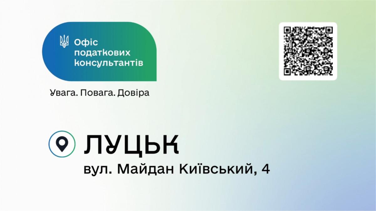 - м. Луцьк, Майдан Київський, 4, зал №2 Центру обслуговування платників Луцької ДПІ.