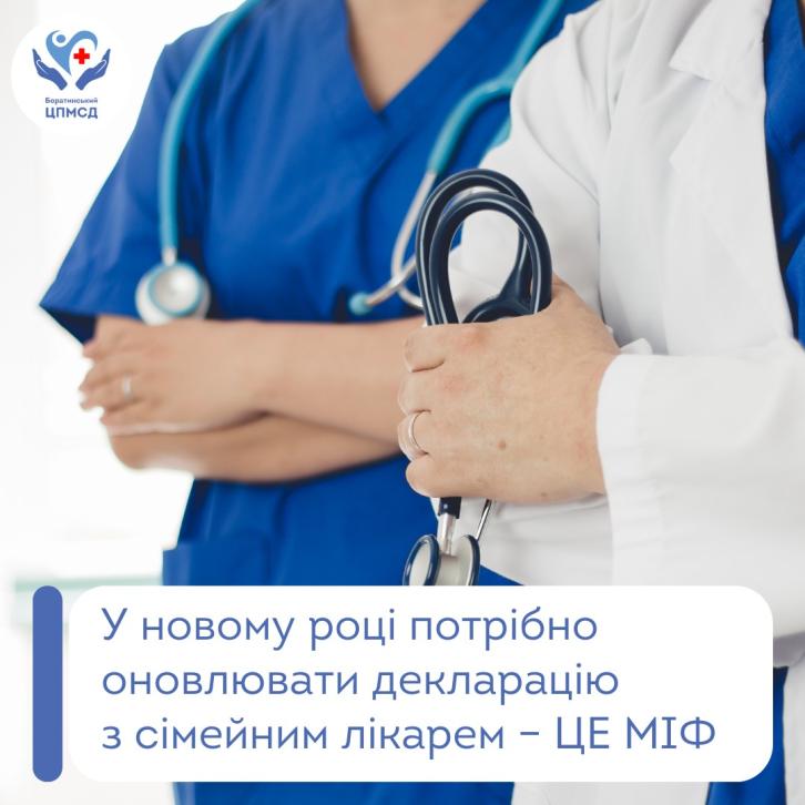 Декларація з сімейним лікарем діє безстроково. Тому не потрібно переукладати декларацію з сімейним лікарем, терапевтом та педіатром з початку року. Якщо ви вже обрали собі лікаря ЦПМСД Боратинської сільської ради і підписали з ним декларацію – можете не хвилюватися про її чинність.