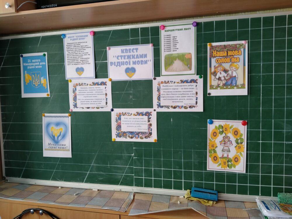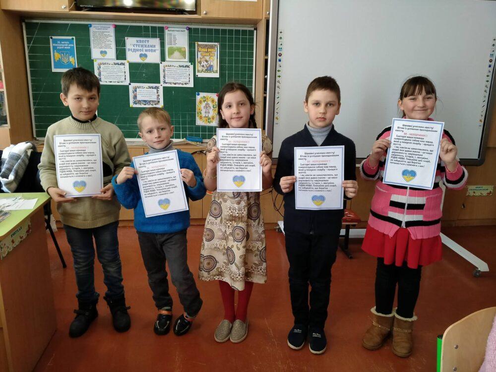 Школярі-початківці разом з класним керівником Оксаною Сахнюк влаштували мовознавчий квест «Стежками рідної мови». Учні демонстрували свої мовні знання, вправлялися у майстерності застосування унікальних українських слів, що засвідчують її красу, повноцінність і беззаперечне право бути в переліку впізнаваних мов світу.