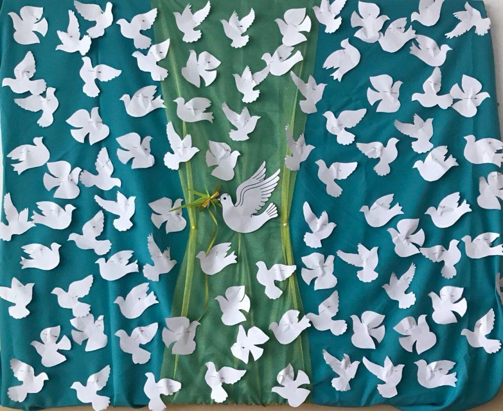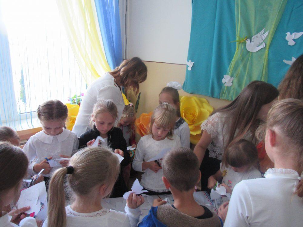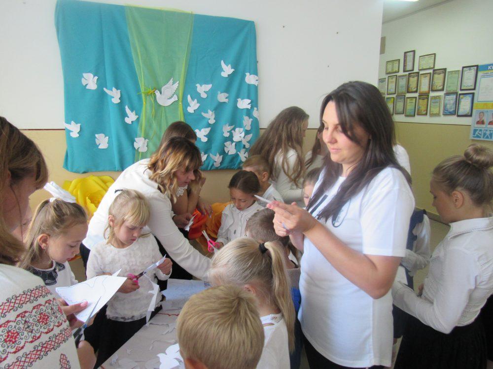 Учні, батьки, педагоги мали змогу приєднатися до акції «Голуб миру» в рамках якої виготовили паперових голубів та долучитися до загальношкільного флешмобу «Ми – за мир!», аби показати наскільки важливим є мир, свобода, добро і повага.