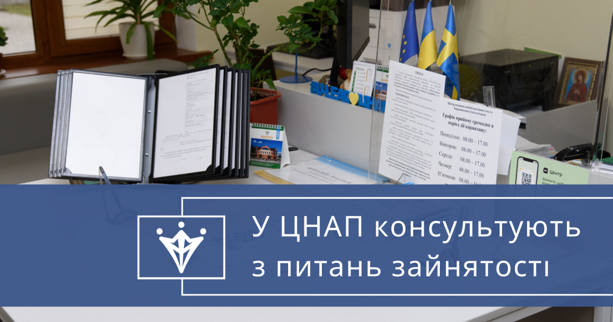 Отримати консультацію щодо питань зайнятості можна буде вже цієї середи, 10 серпня, з 10:00 до 12:00 у центральному офісі ЦНАП (Боратин).