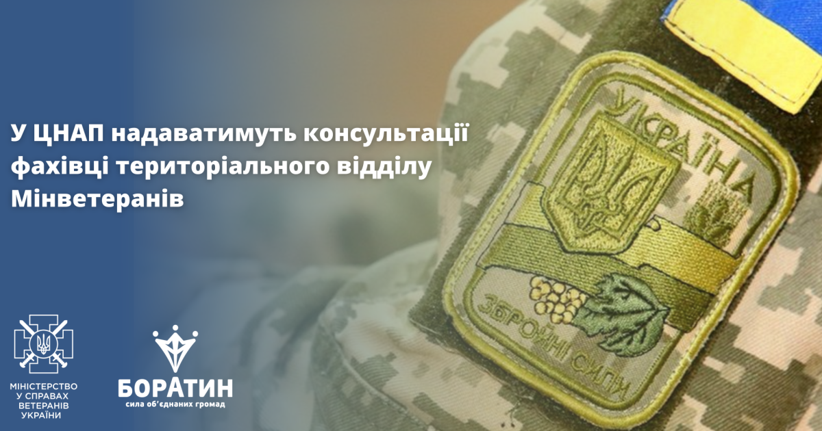У центральному офісі ЦНАП Боратинської сільської ради надаватиме консультації фахівець територіального відділу Міністерства у справах ветеранів України. Прийом громадян кожної останньої середи місяця з 9:00 до 13:00 здійснюватиме начальник відділу у Волинській області Міністерства у справах ветеранів України Наталія Семенюк.
