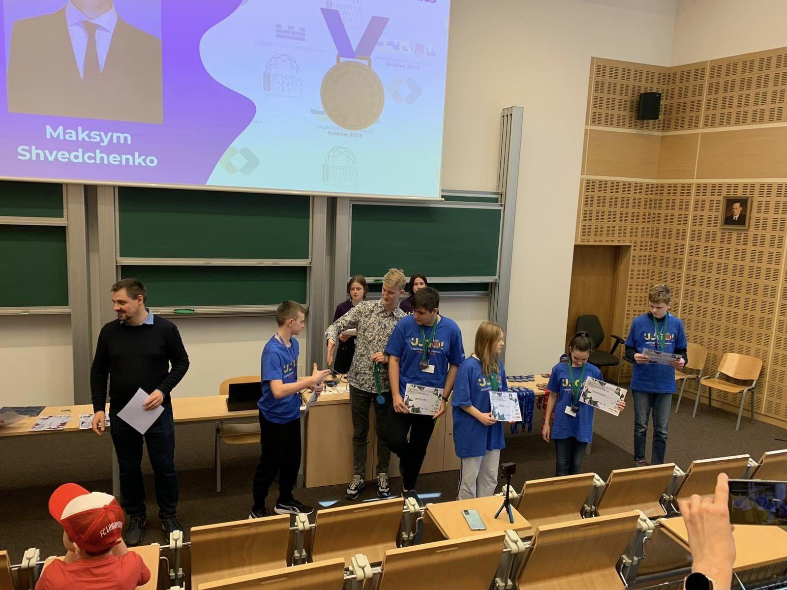 З 20-го по 24-те квітня у Кракові (Польща) проходив фінал Всеукраїнської юніорської та дівочої олімпіад з інформатики 2023 UJGOІ. В ній брали участь 29 українських юніорів та 30 дівчат, а також 4 польських юніори та 5 дівчат. Серед 29 українських юнаків був і наш дев’ятикласник з Боратинського ліцею Тарас Деркач. Він посів ІІІ місце у фіналі Всеукраїнської юніорської олімпіади та отримав диплом відповідного зразка.