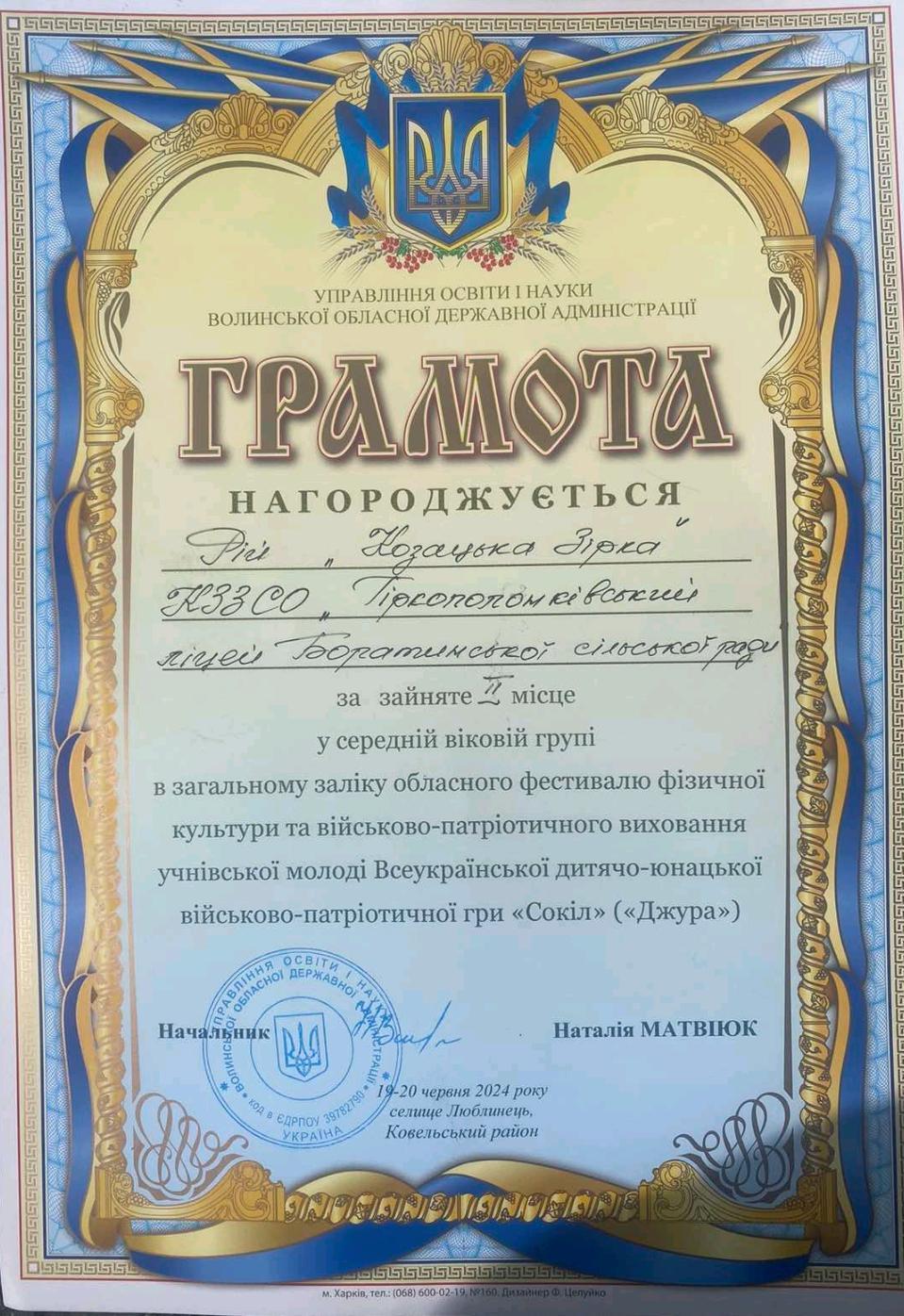 19 та 20 червня тривав обласний Фестиваль фізичної культури та військово-патріотичного виховання учнівської молоді. За результатами двох днів рій «Козацька Зірка» з Гіркополонківського ліцею у середній віковій групі посіли ІІ місце.