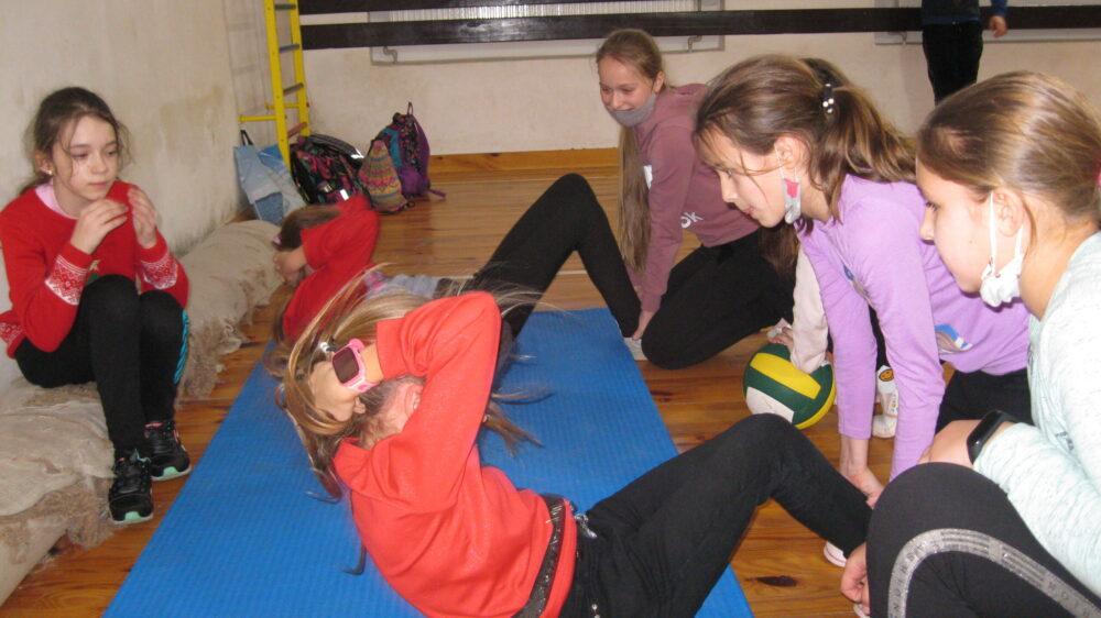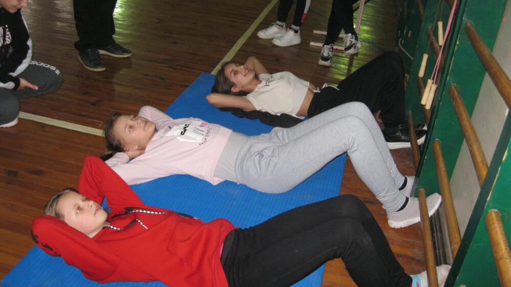 У виконанні вправи з підніманні тулуба з положення лежачи на спині за 30 сек. з результатом 29 разів третє місце посіла Христина Павліха з 9-А класу, друге місце з результатом 30 разів зайняла Маргарита Шевчук з 8-Б класу. Переможцем з даного виду змагань стала Софія Зингель з 9-А класу (31 раз).