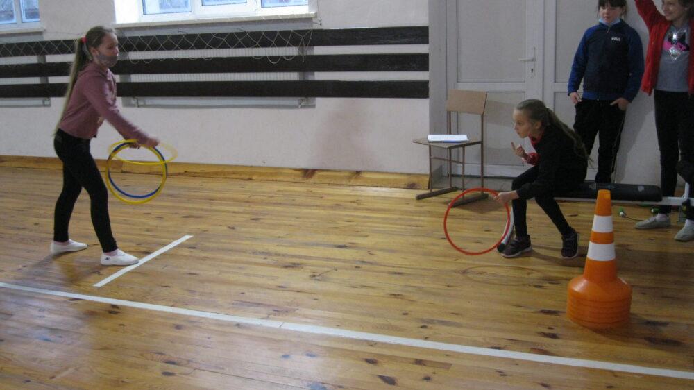 У вправності метання кілець (8 штук) на конус з відстані 3 м. кращий результат (6 попадань) показала Маргарита Шевчук – 8-Б клас, друге місце розділили Юлія Рихлюк – 5-Б клас та Олександра Бугайчук – 5-А клас, їх результат 5 попадань.