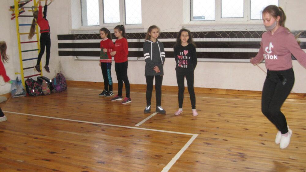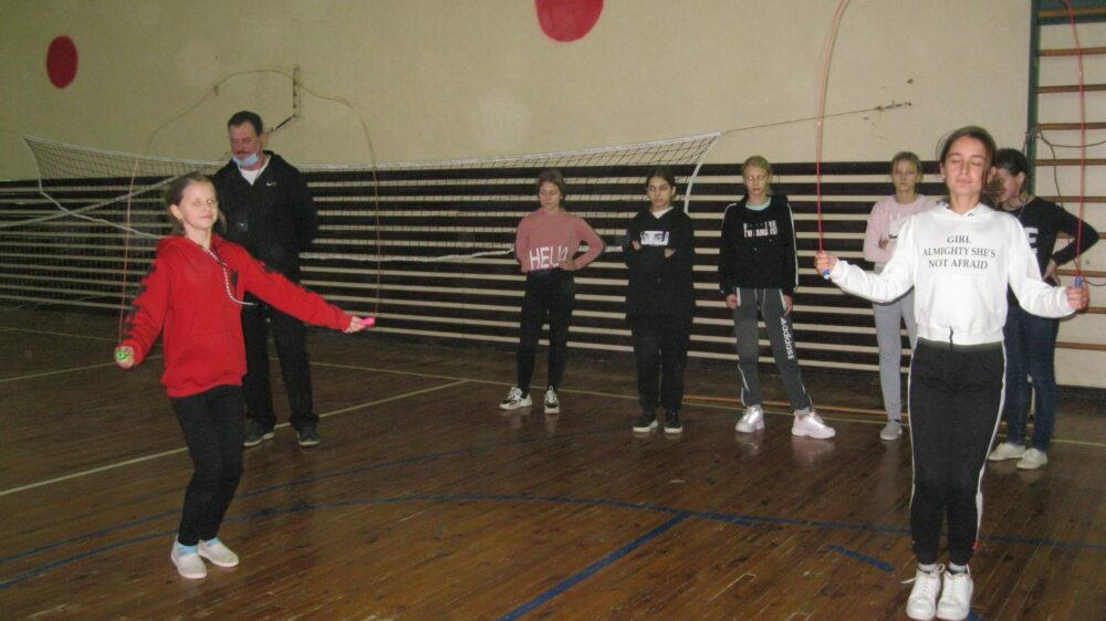 У змаганнях зі стрибків через скакалку за 30 сек. третє місце зайняла Анастасія Цибуковська з 9-А класу, її результат 79 разів, друге місце Анна Жердецька з 5-А клас (82р.) та з результатом 88 разів перше місце виборола Софія Зингель з 9-А класу.