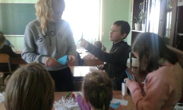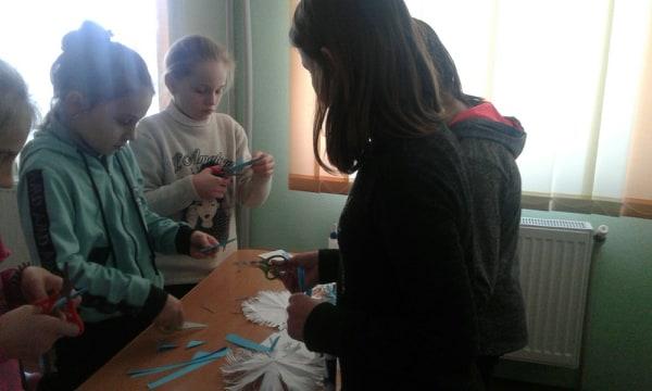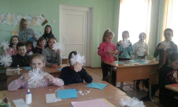 Не стали винятком і учні Мстишинської школи, восьмикласниці Катерина Красько і Діана Патута організували майстер-клас з виготовлення новорічних прикрас. Справжньою фішкою майстер-класу стало виготовлення сніжинок, що перетворилося на яскраве дійство.