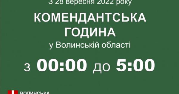 Комендантська година триватиме з 00.00 год. до 05.00 год. Про це повідомив начальник Волинської ОВА Юрій Погуляйко.