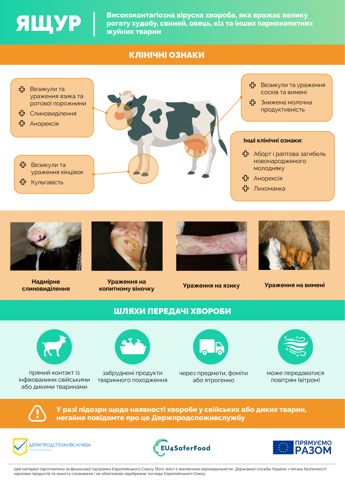 Ящур — це гостра зоонозна (здатна передаватися людям від тварин), природно осередкова інфекційна хвороба, що найчастіше вражає, як окремих особин, так і спричинює епізоотії великої й дрібної рогатої худоби й свиней, а також диких тварин — олені, козулі, лосі та дикі кабани.
