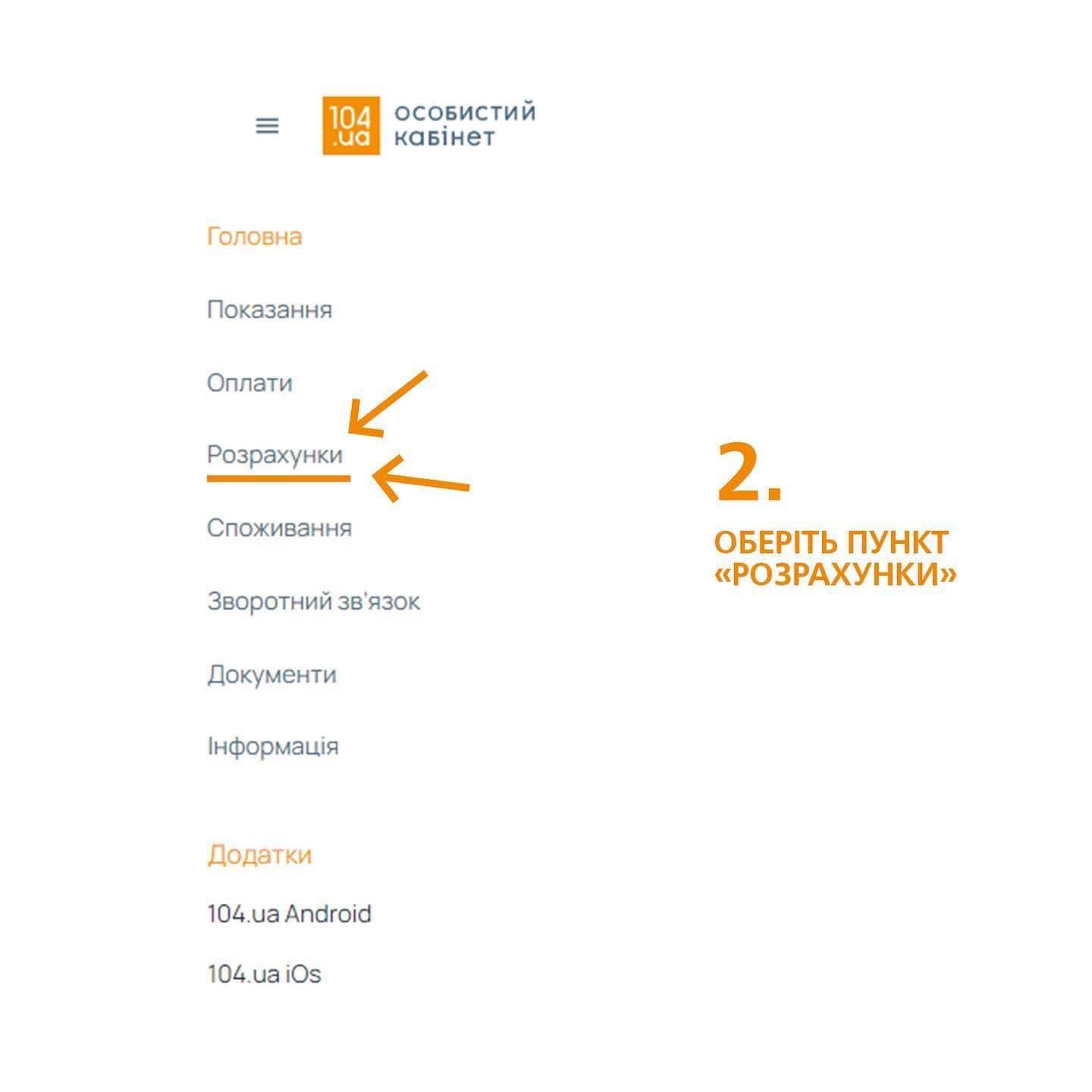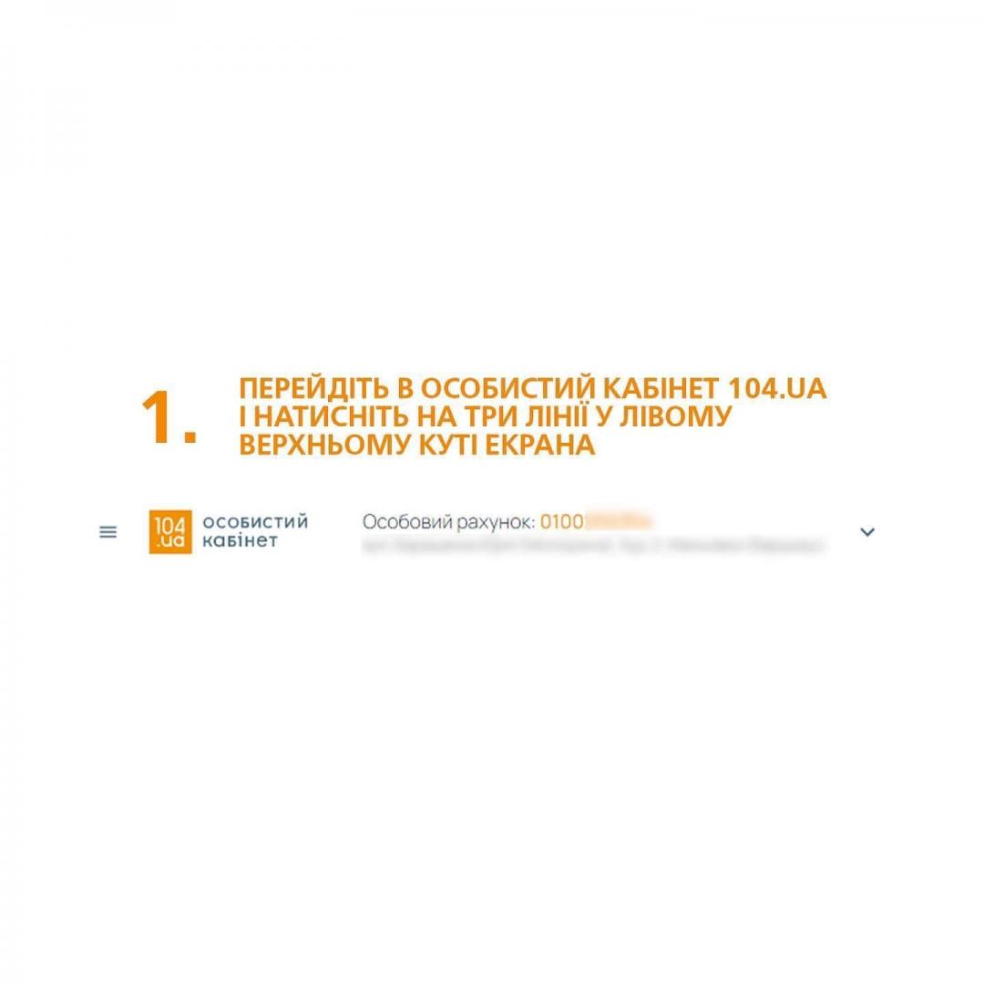 - перейти в «Особистий кабінет» на сайті: https://104.ua і натиснути на три лінії в лівому верхньому куті екрана;