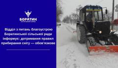 Відділ з питань благоустрою Боратинської сільської ради інформує: дотримання правил прибирання снігу — обов’язкове