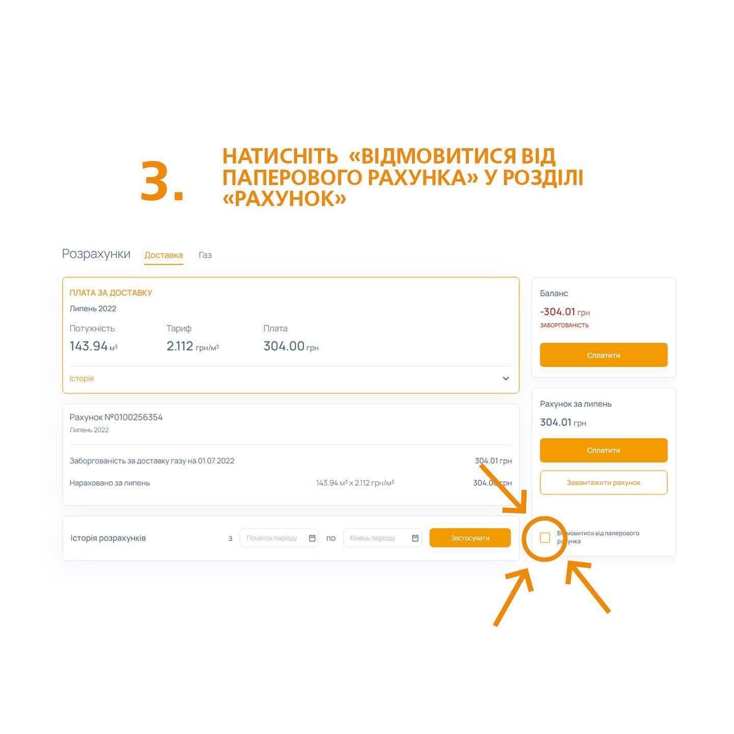 Користування електронними рахунками - екологічно та зручно! Виховуйте екосвідомість, сплачуйте за послугу розподілу газу з комфортом та вчасно. Зробіть свій внесок у нашу спільну перемогу над ворогом.
