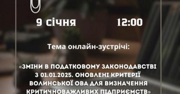 Тема: «Зміни в податковому законодавстві з 01.01.2025 р. Оновлені критерії Волинської ОВА для визначення критично важливих підприємств»