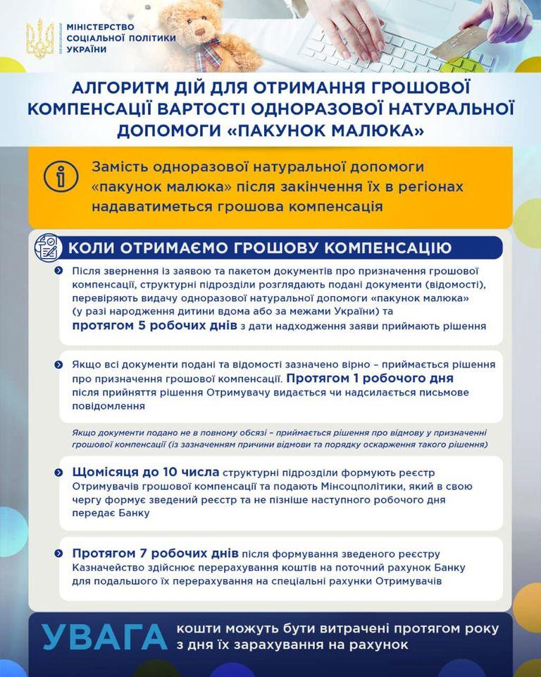 З 1 вересня почав працювати новий механізм отримання грошової компенсації одноразової допомоги пакунок малюка. Про це повідомляє Міністерство соціальної політики України.